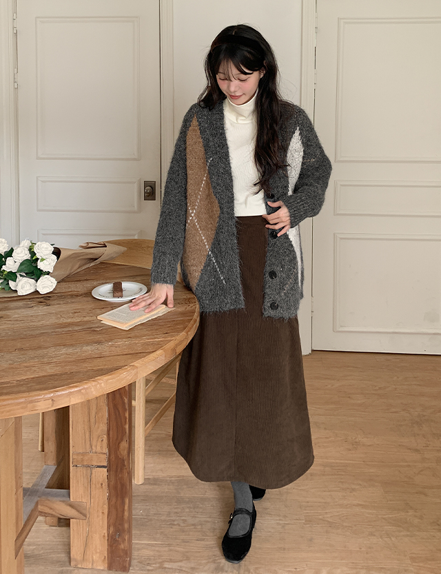 먼로 아가일 寬鬆 羊毛 針織 開襟外套 85738