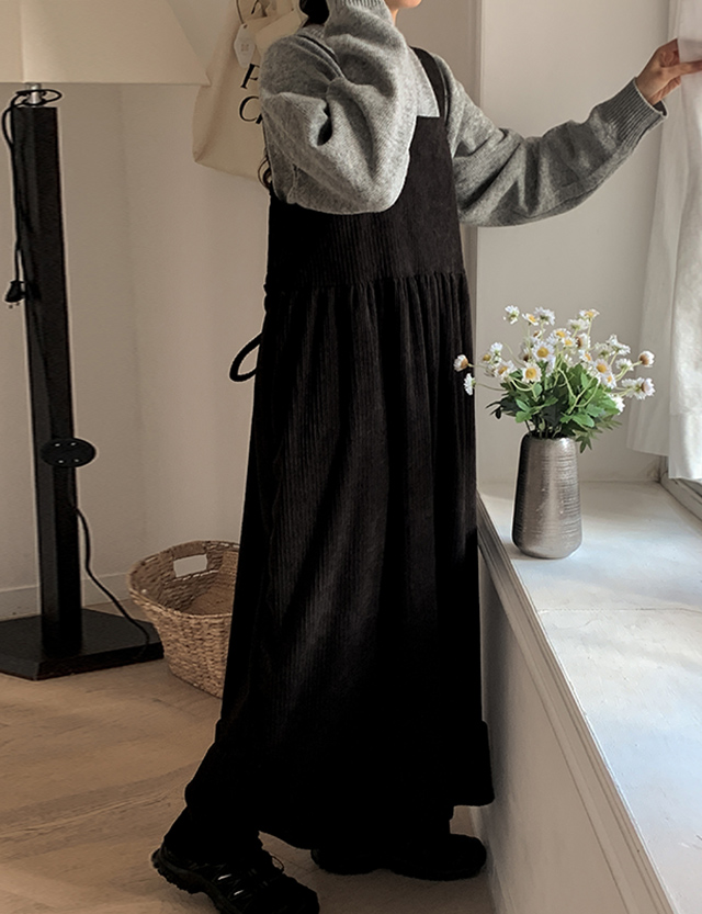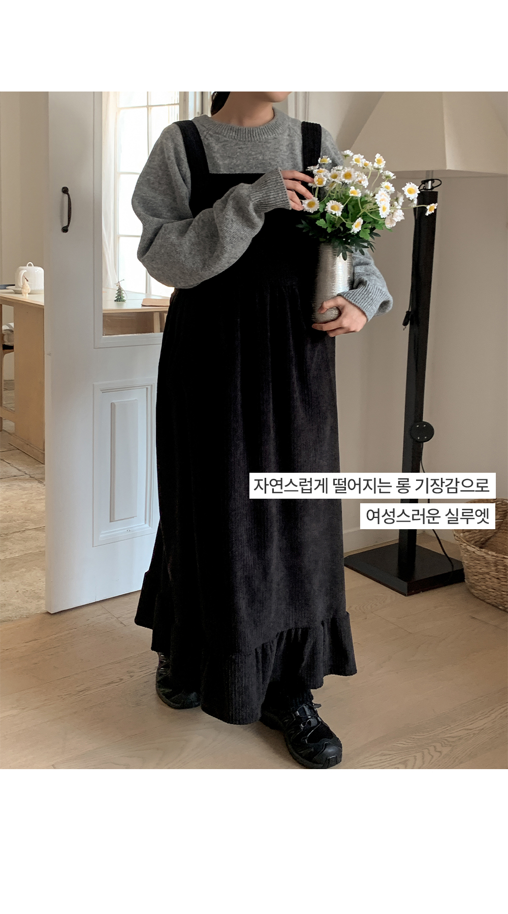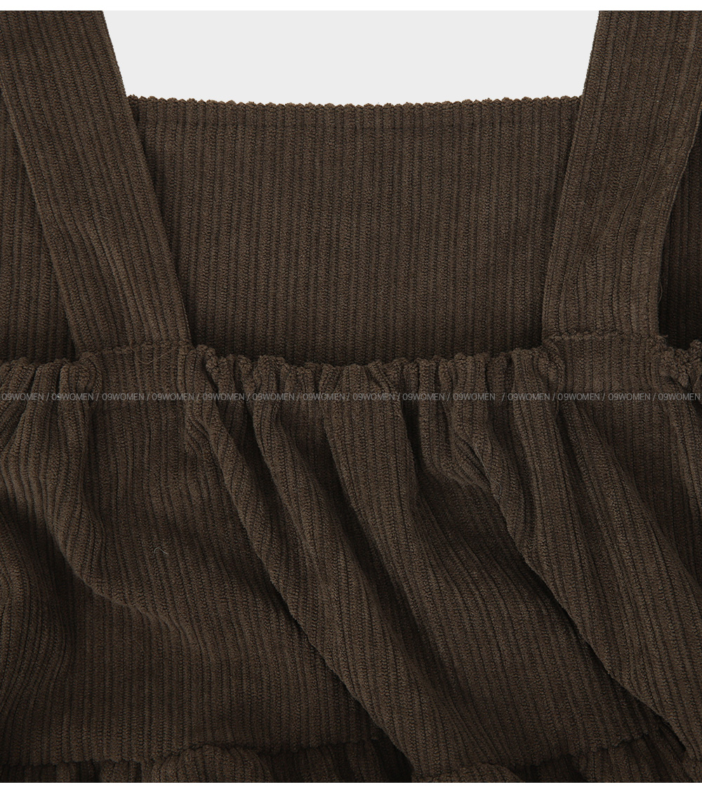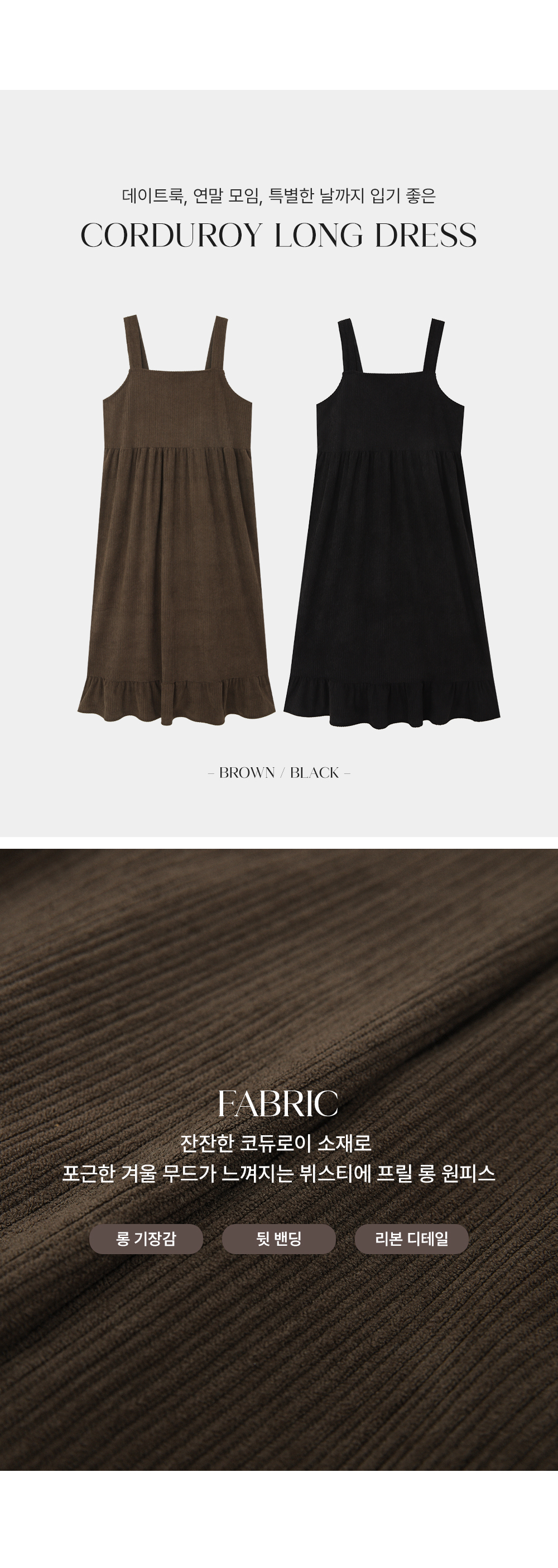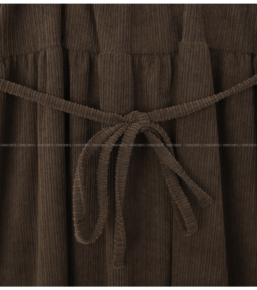 아드링 燈芯絨 뷔스티에 褶皺 長款 洋裝 85841