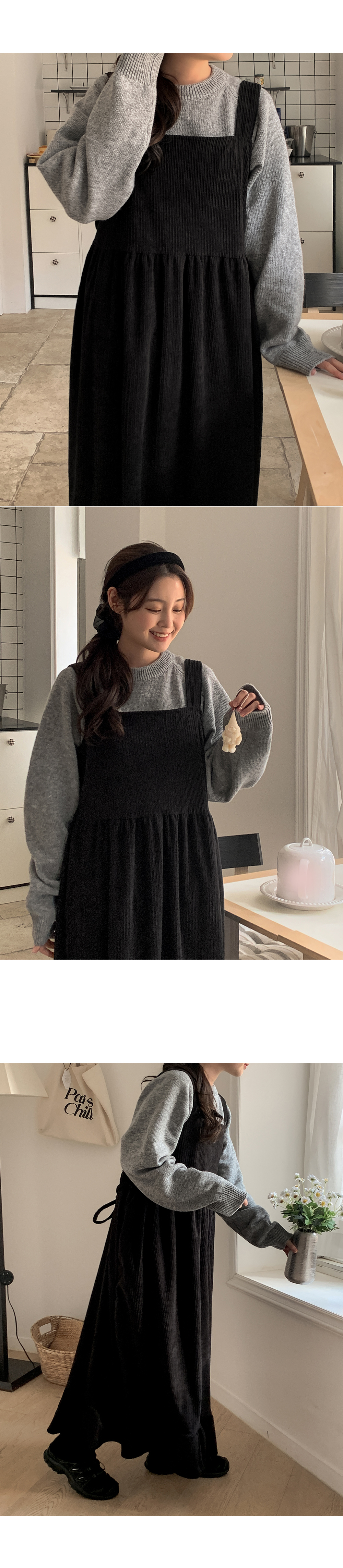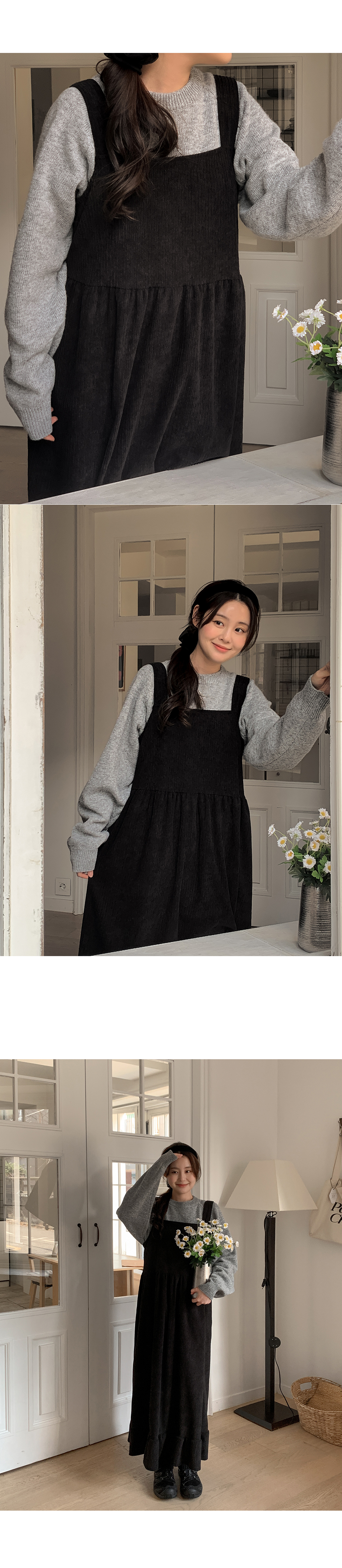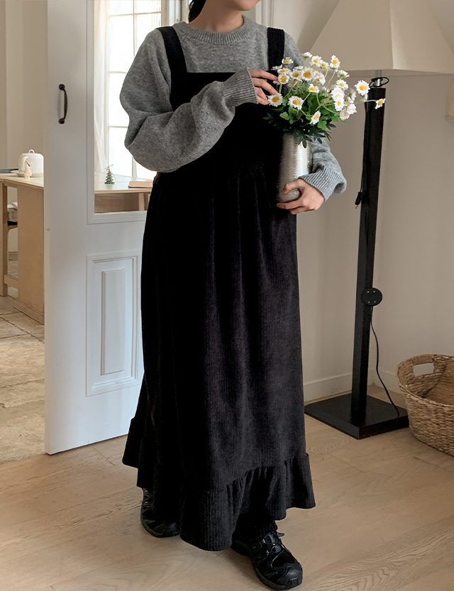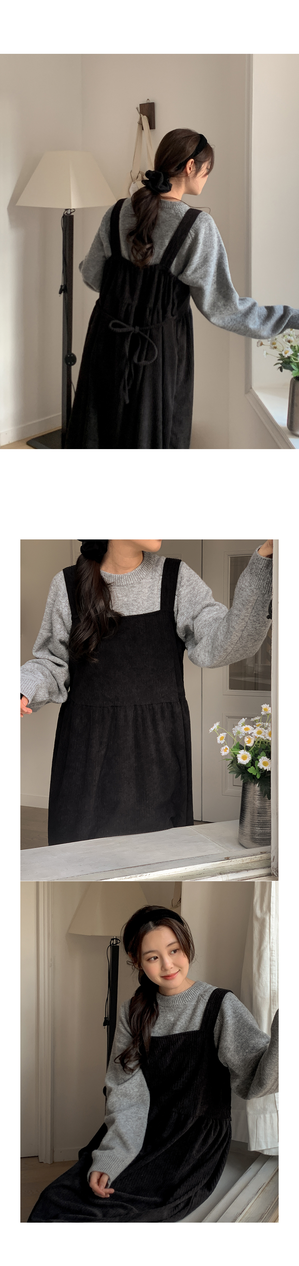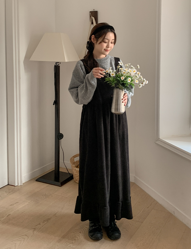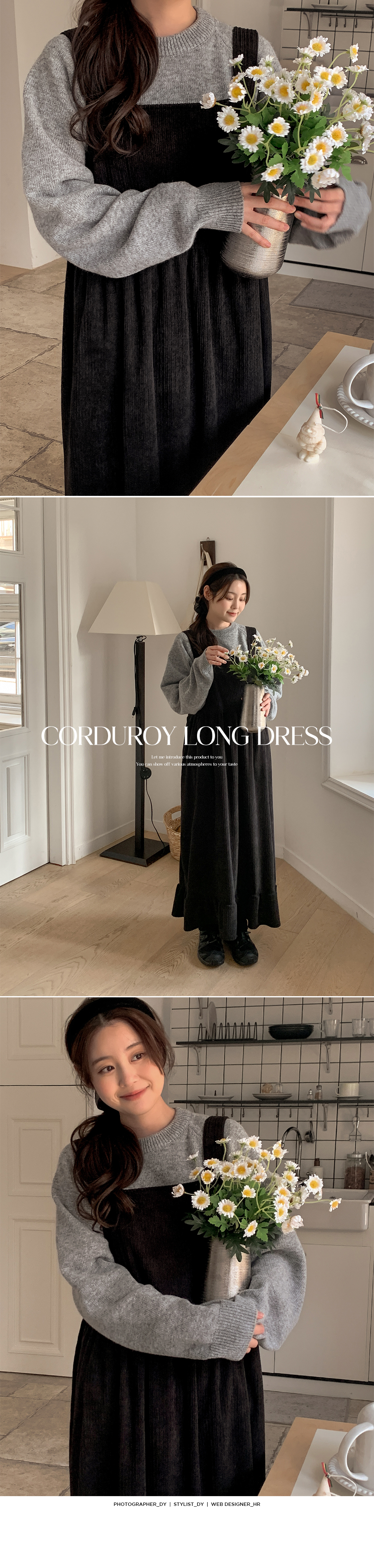 아드링 燈芯絨 뷔스티에 褶皺 長款 洋裝 85841