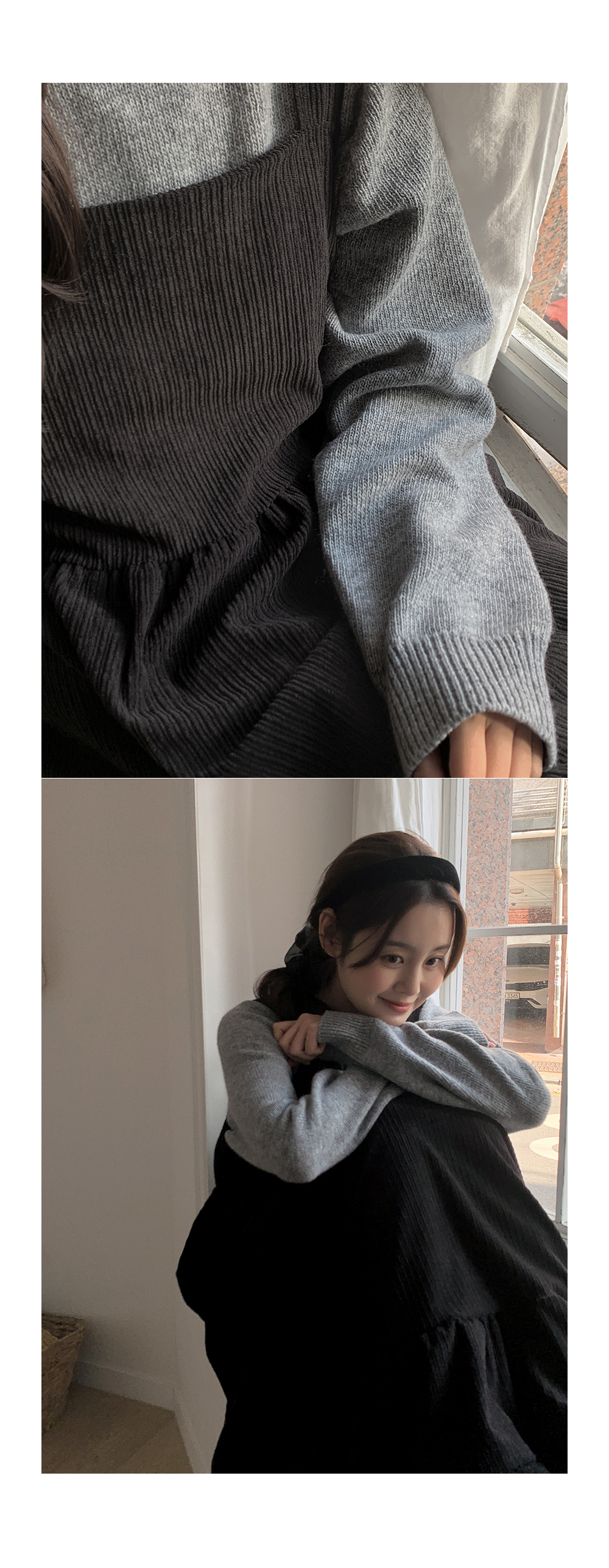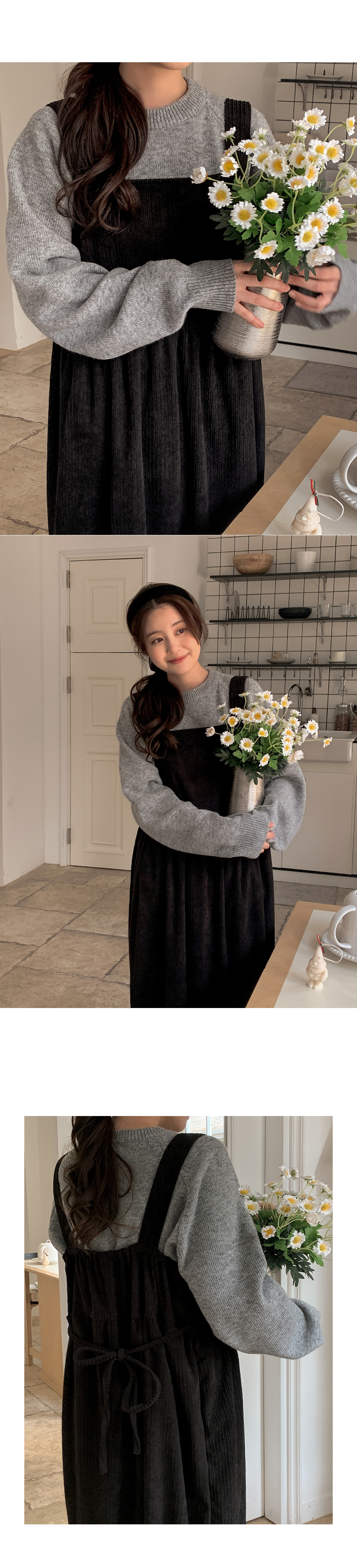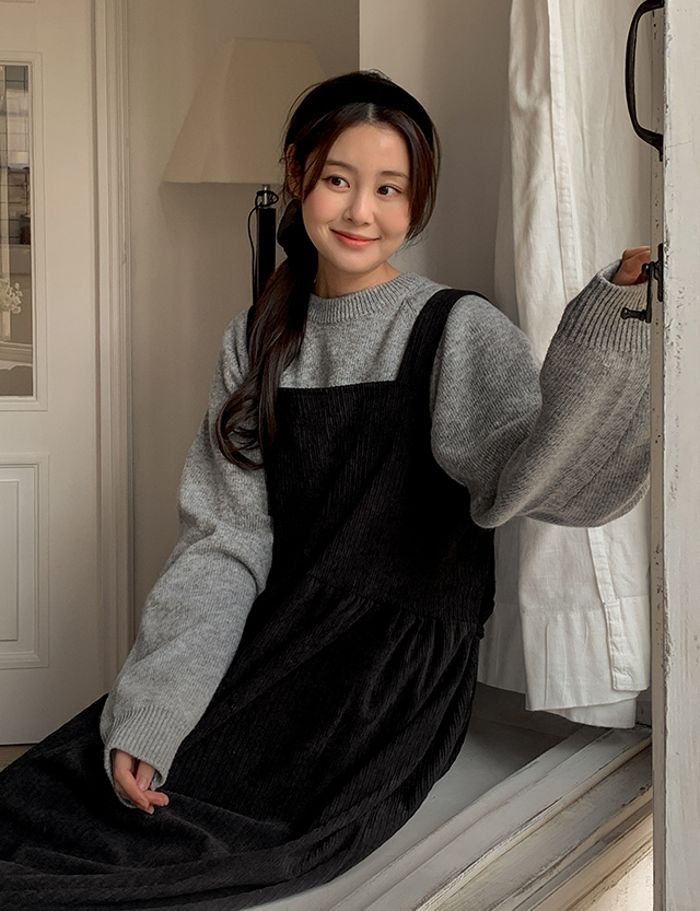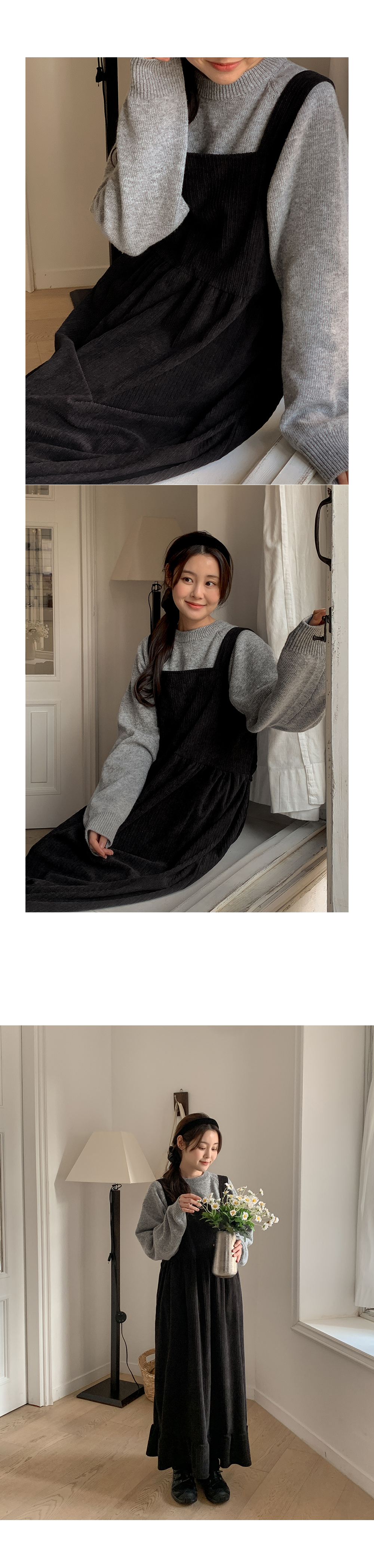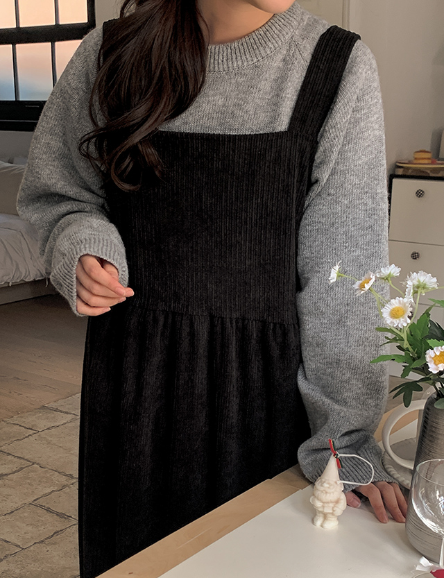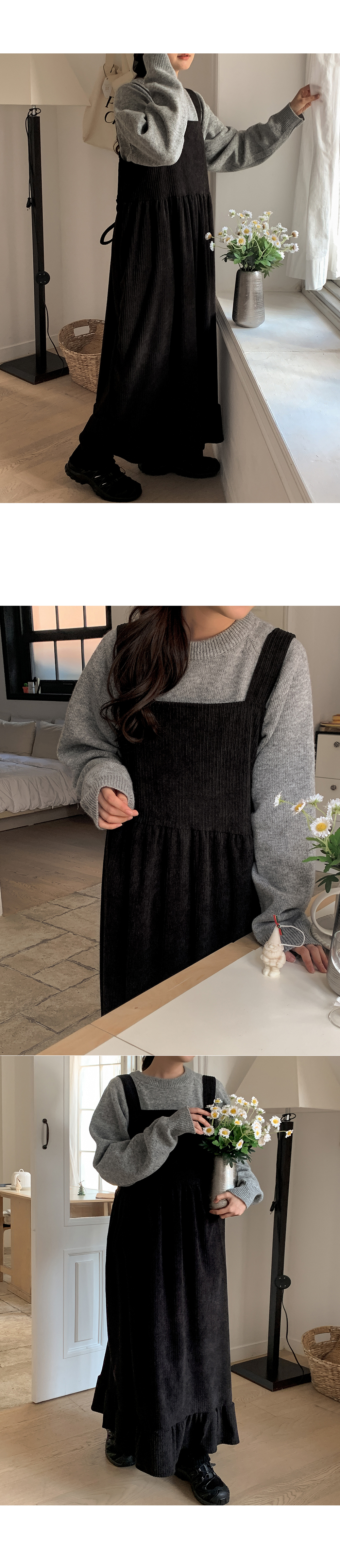 아드링 燈芯絨 뷔스티에 褶皺 長款 洋裝 85841