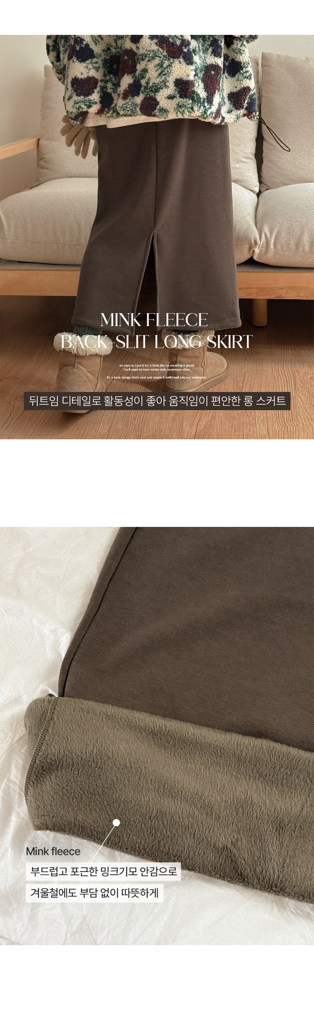 부드럽고 포근한 밍크기모 안감으로 겨울철에도