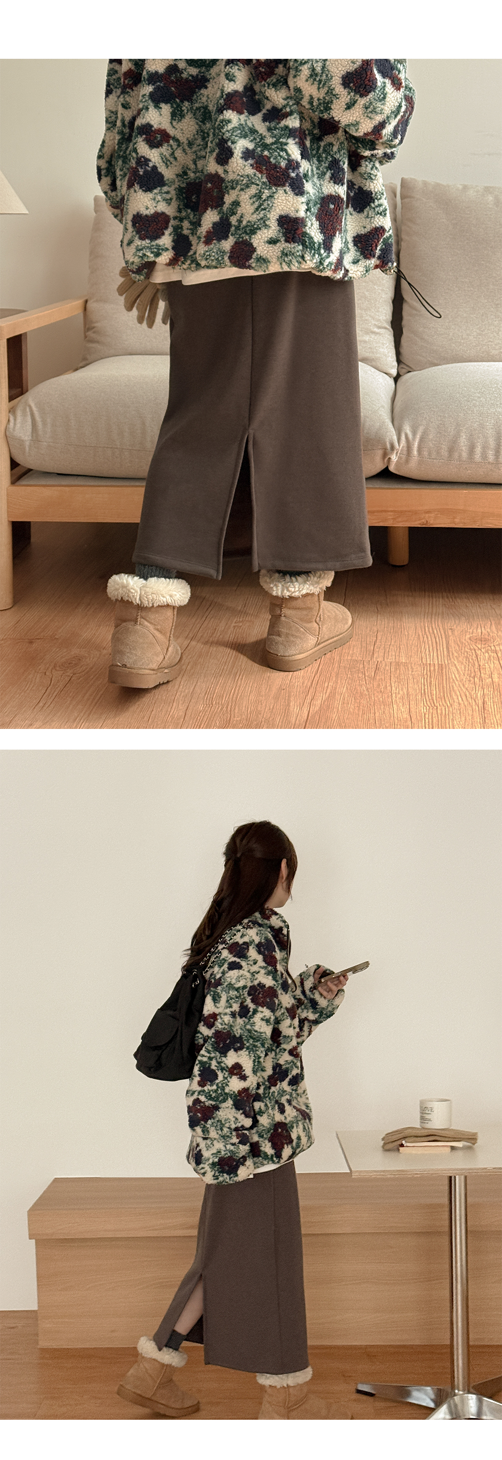 부담 없이 따뜻하게 착용 가능한 롱 스커트입니다.