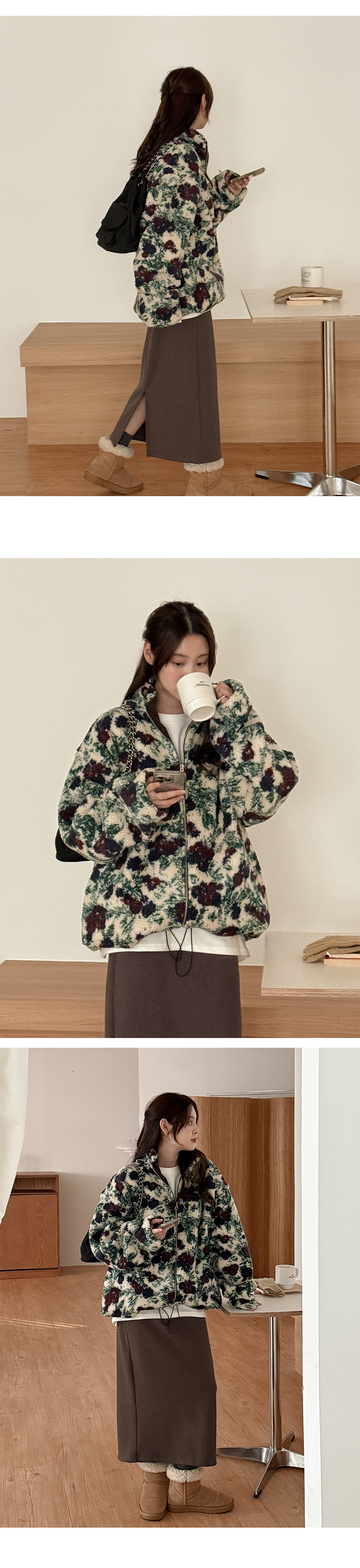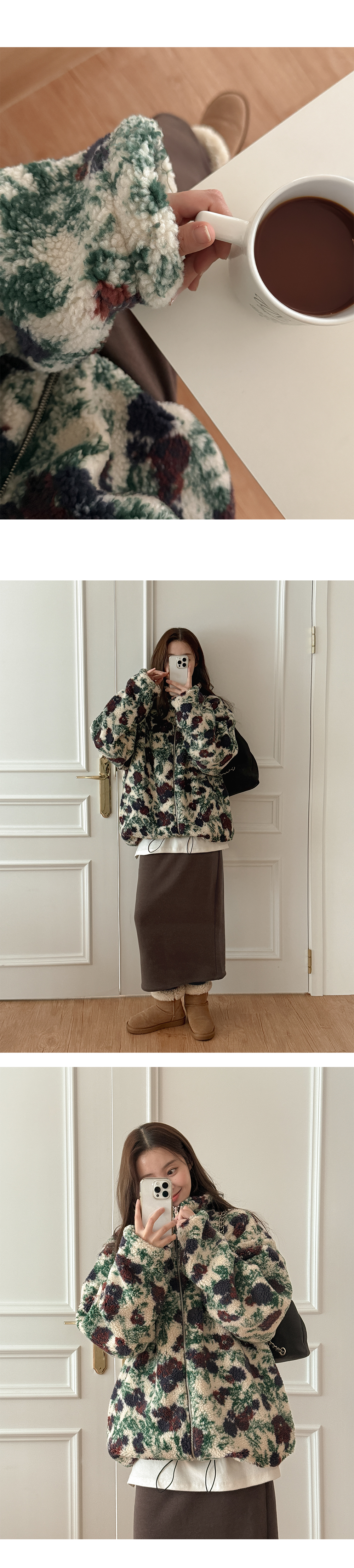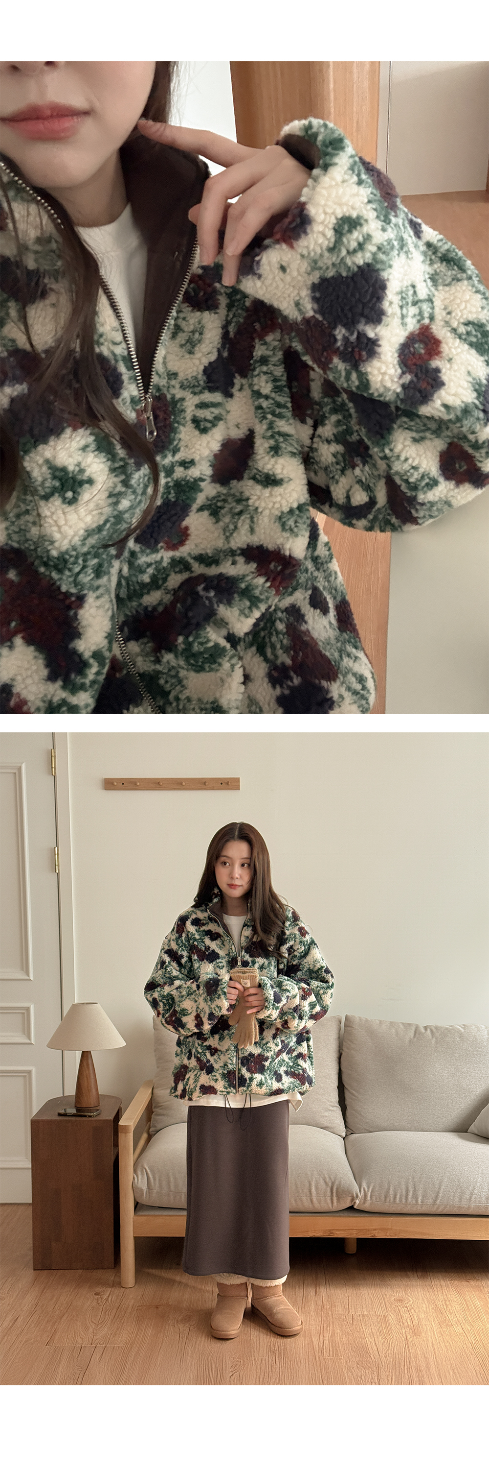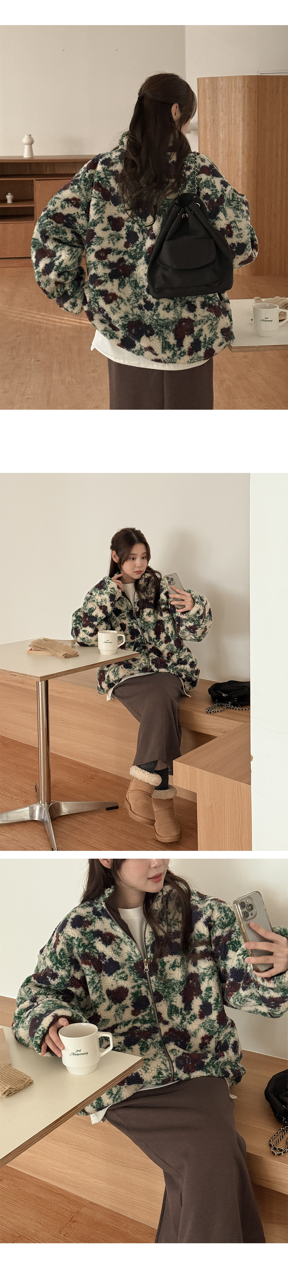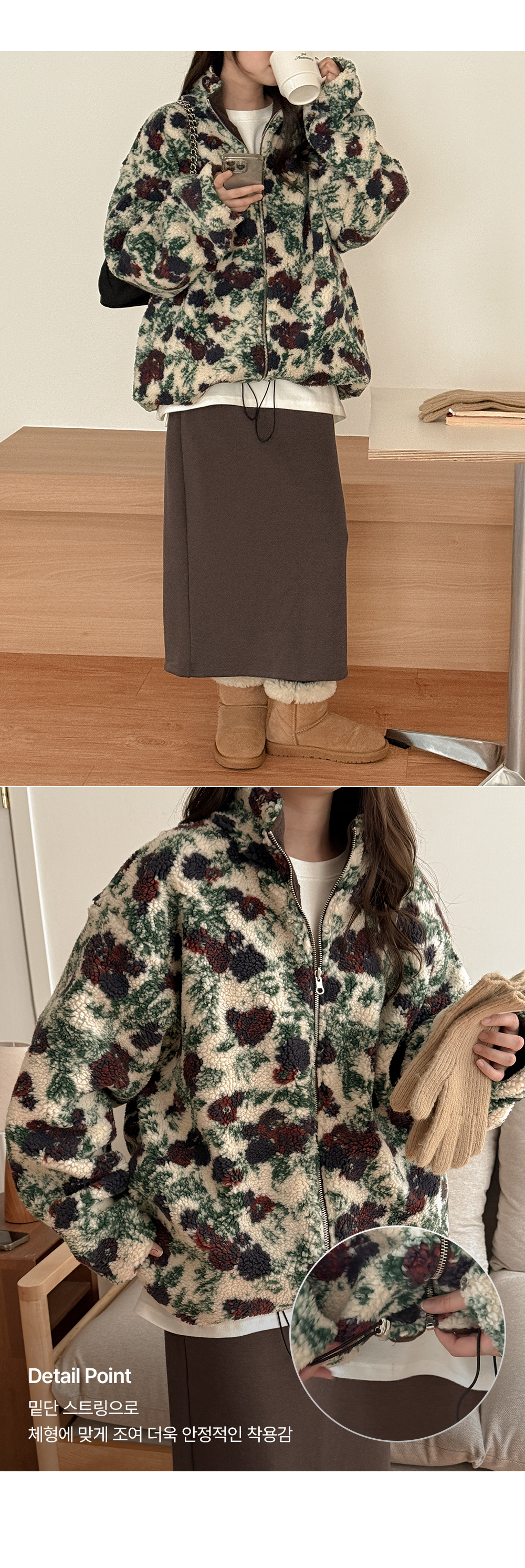 리버시블 디자인의 플라워 점퍼입니다.
