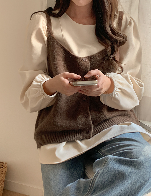 니트 소재의 버튼 뷔스티에예요 ✨