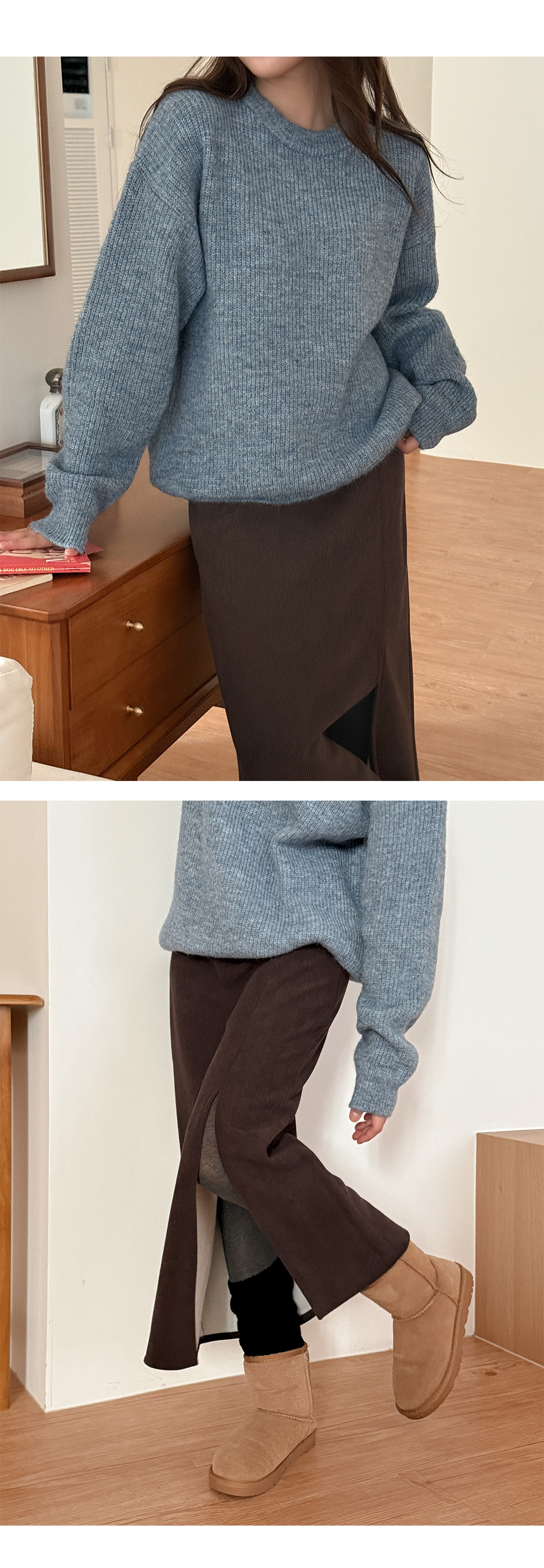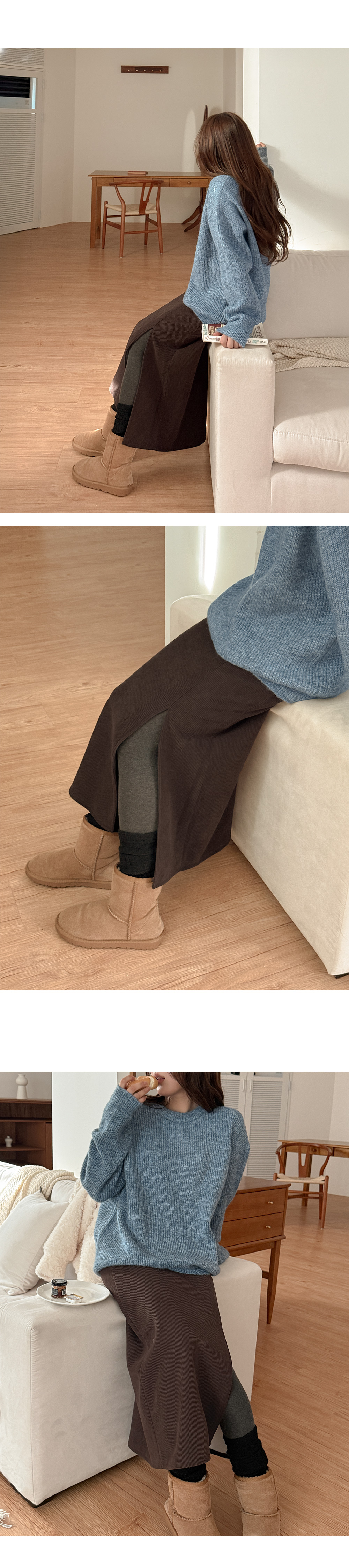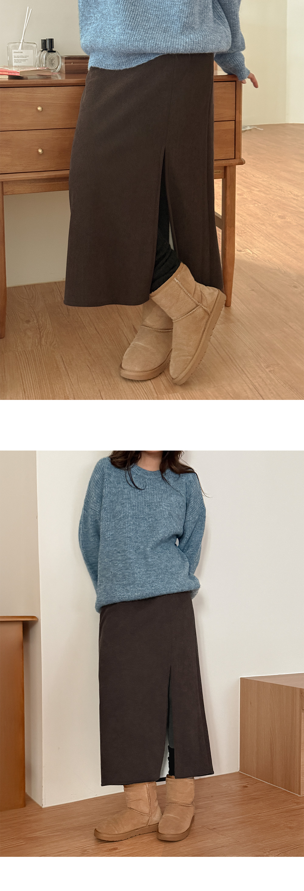 닿는 느낌이 편안하며, 겨울 데일리 스커트로 제격이에요.