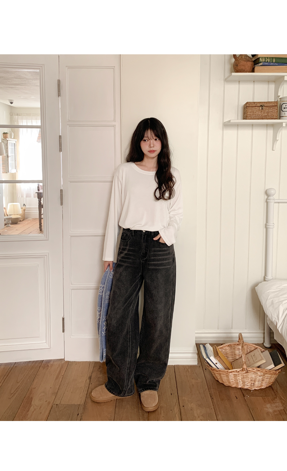 [特價 PROJECT] 딱 내가 원한 세미 寬 絨毛 牛仔 褲 85858