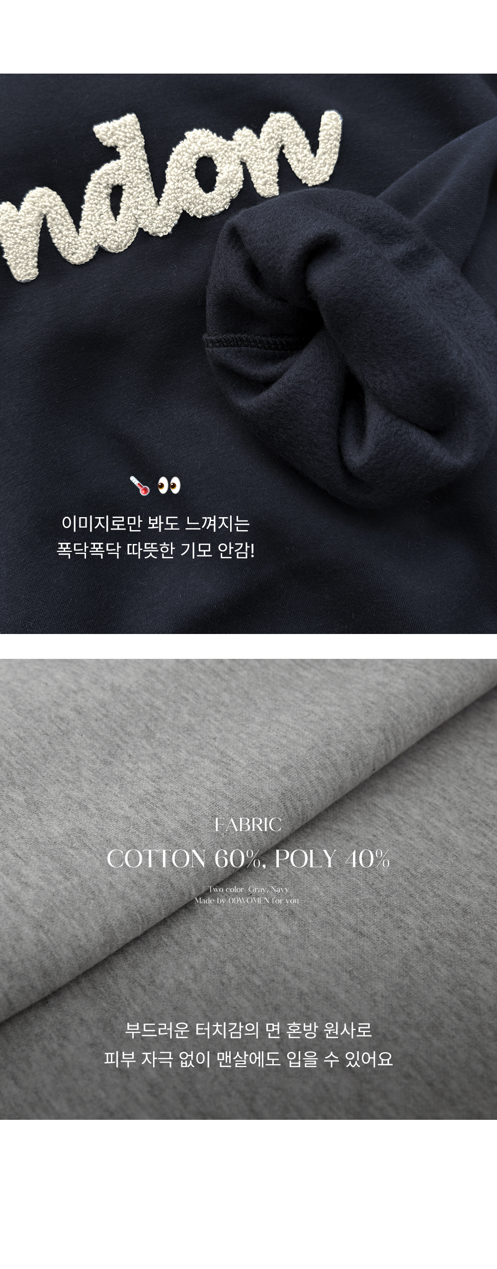 부드러운 터치감의 기모 소재라 착용감이 편안하고