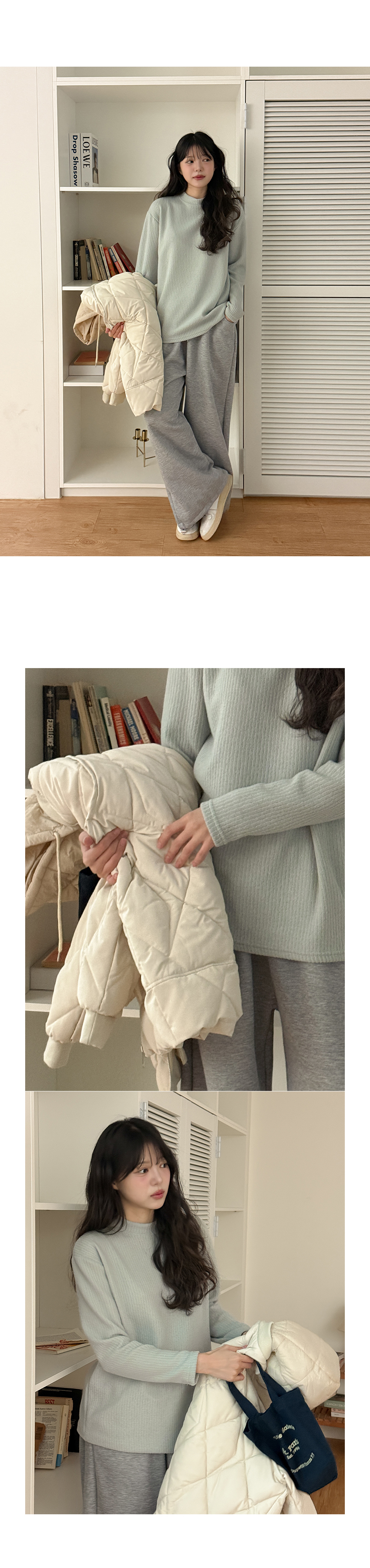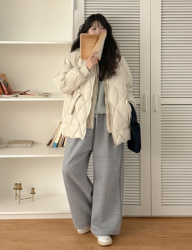 모먼티 配色 鬆緊腰 加絨 寬褲 85812