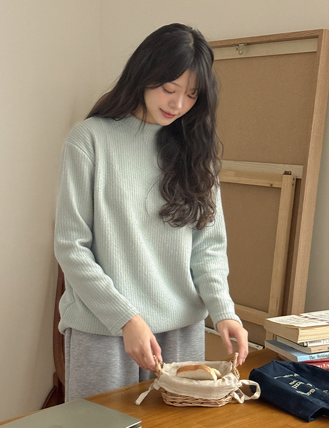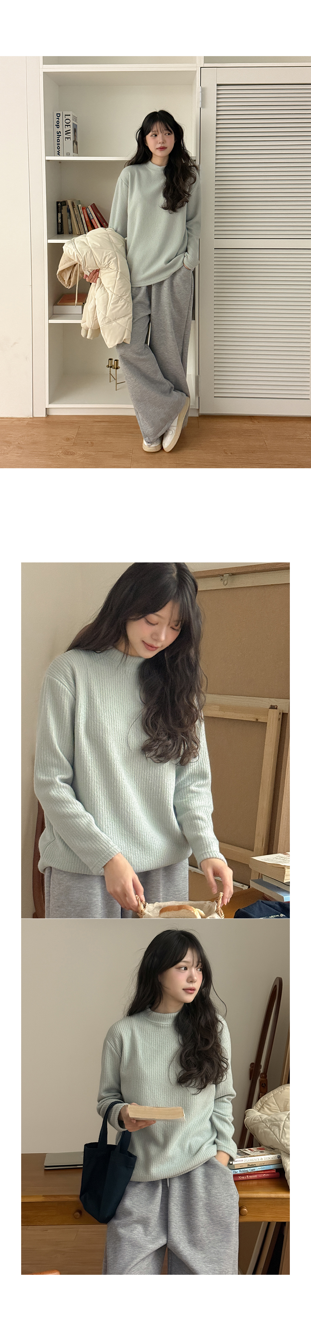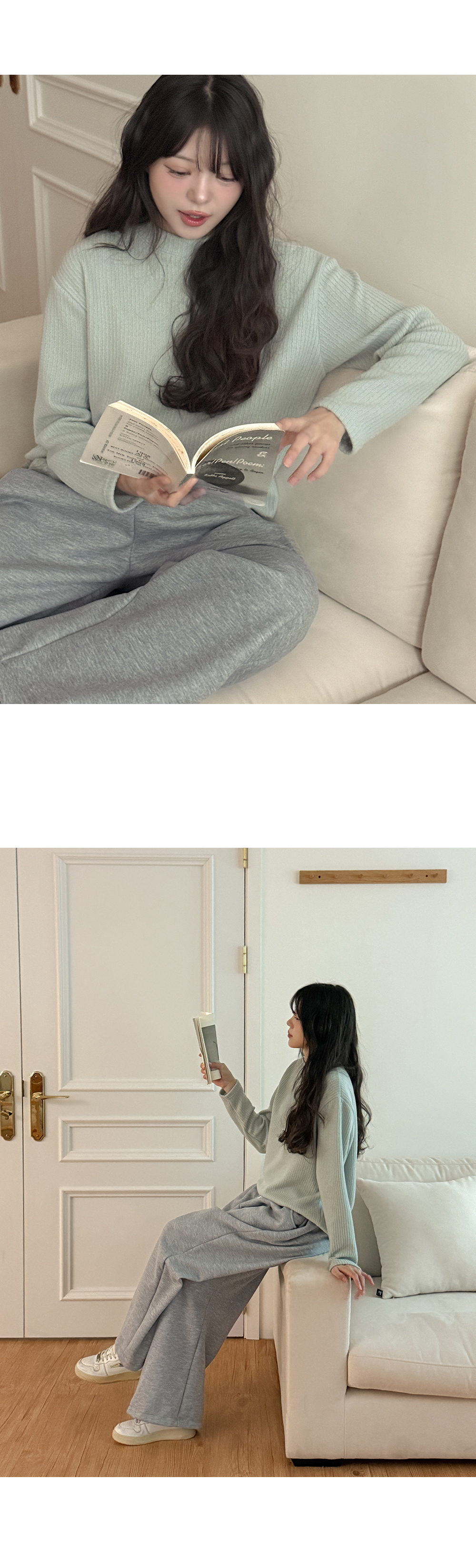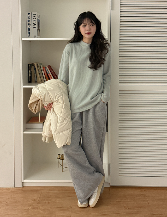 모먼티 配色 鬆緊腰 加絨 寬褲 85812
