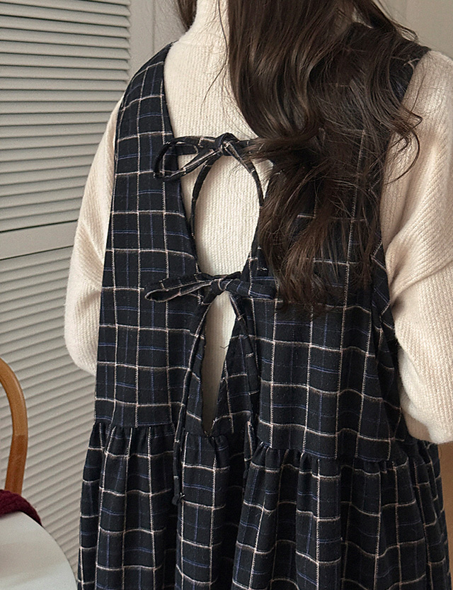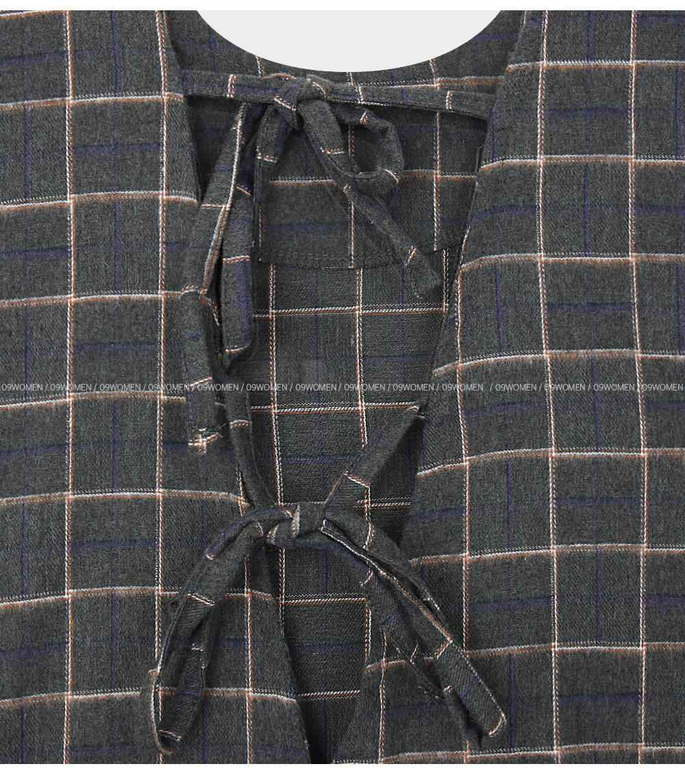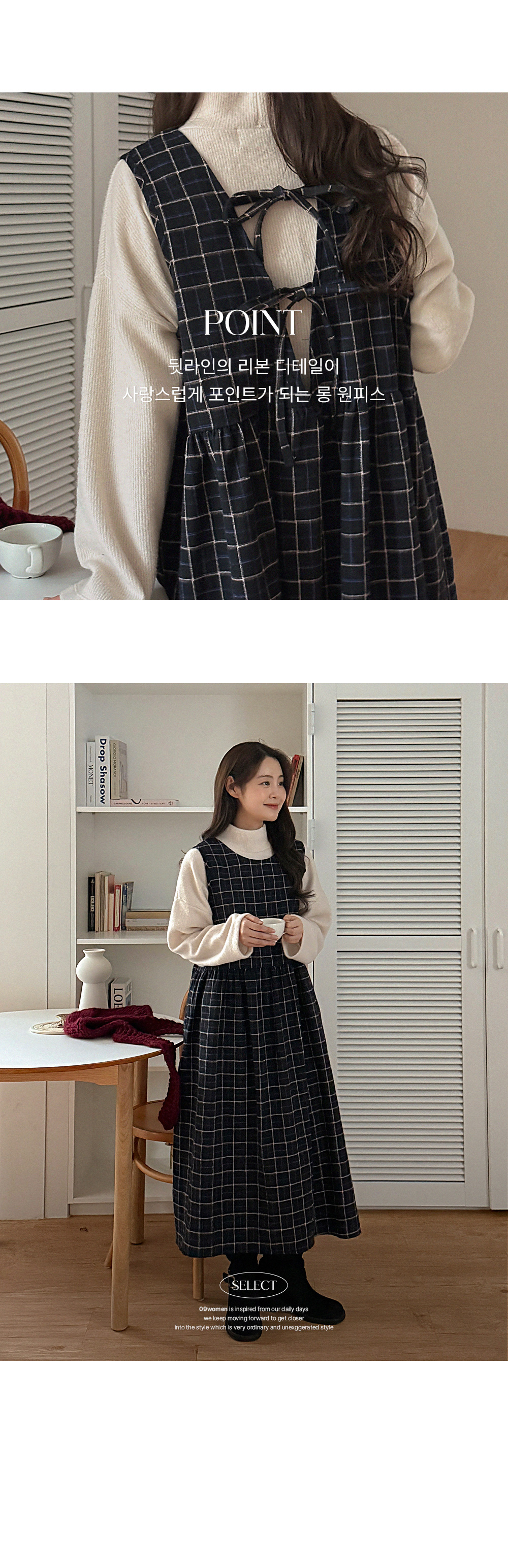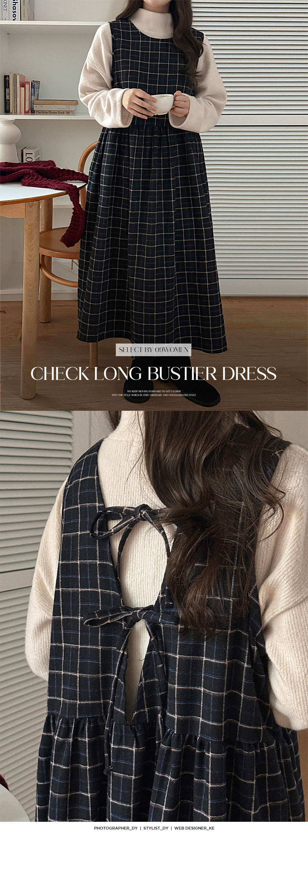 루아블릿 蝴蝶結 格紋 長款 뷔스티에 洋裝 85945