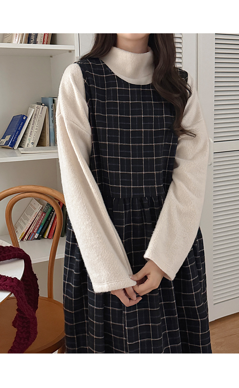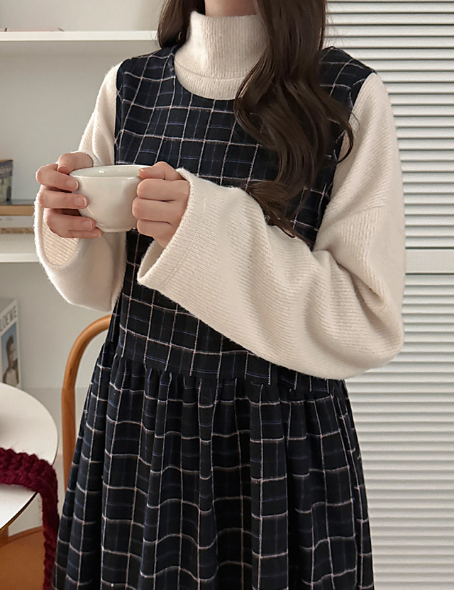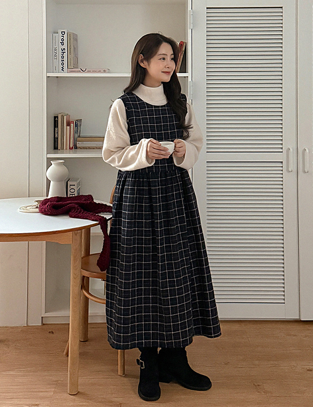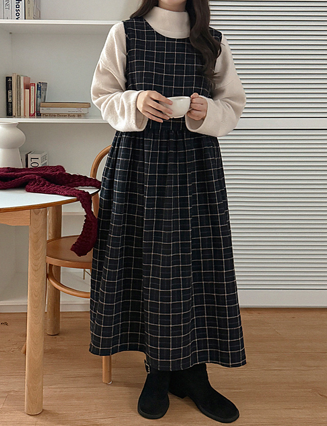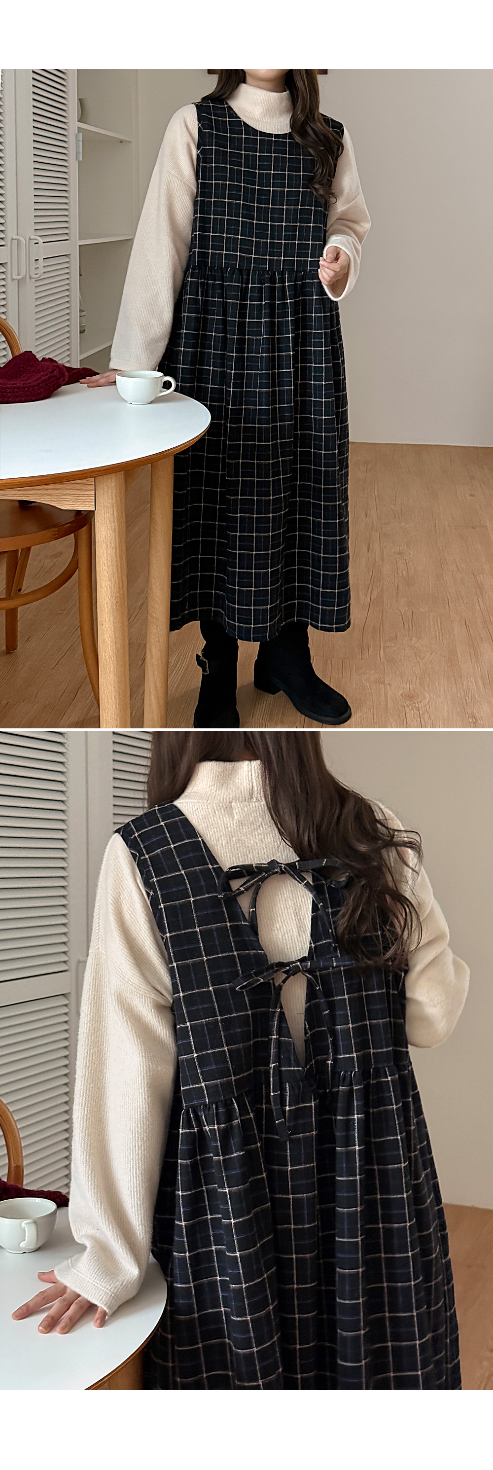 루아블릿 蝴蝶結 格紋 長款 뷔스티에 洋裝 85945
