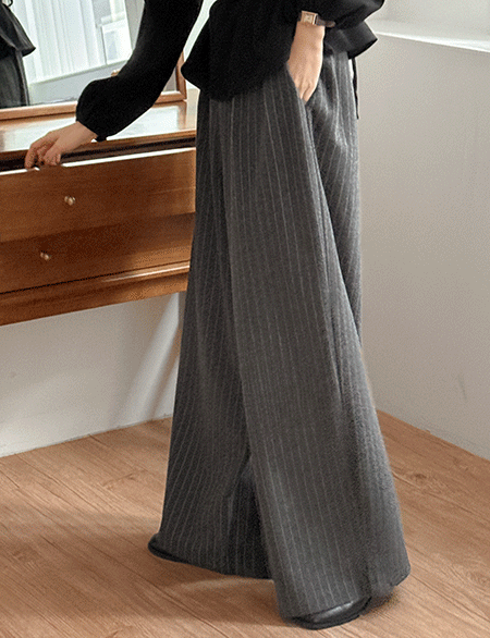 • 랜토 鬆緊腰 條紋 打摺 寬 休閒長褲 85922