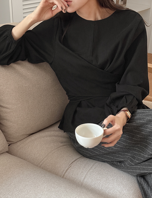 고급스러운 무드가 매력적인 드레이프 라운드 블라우스입니다.