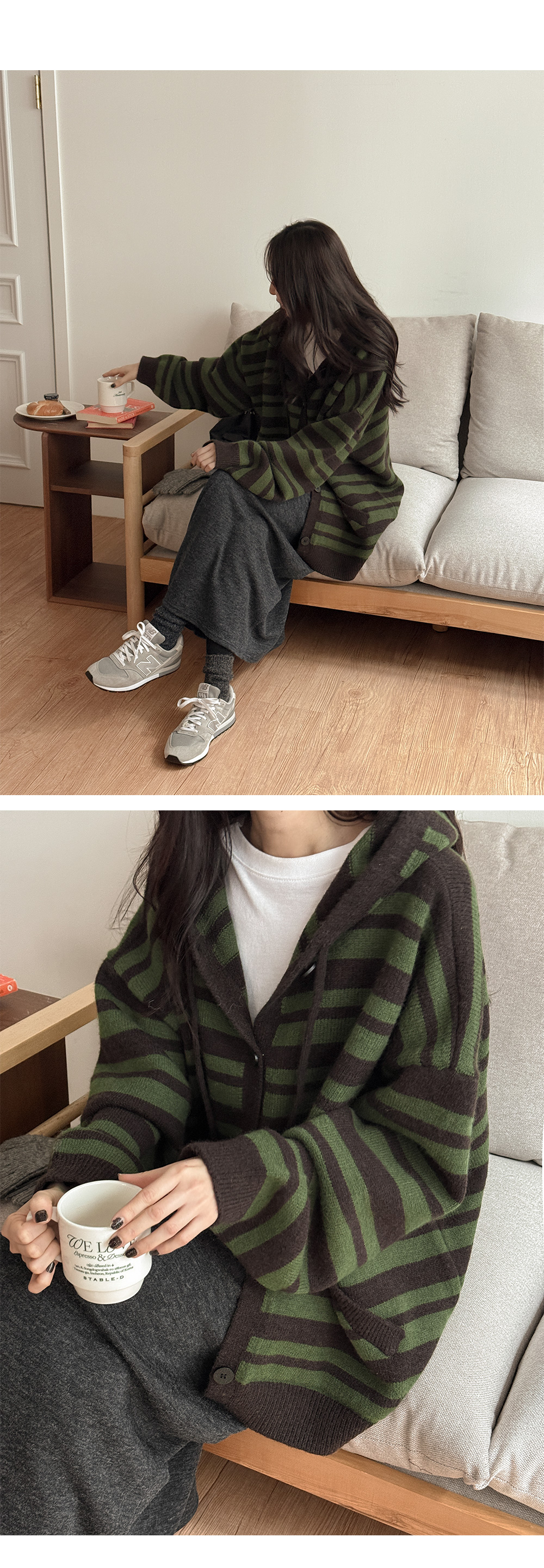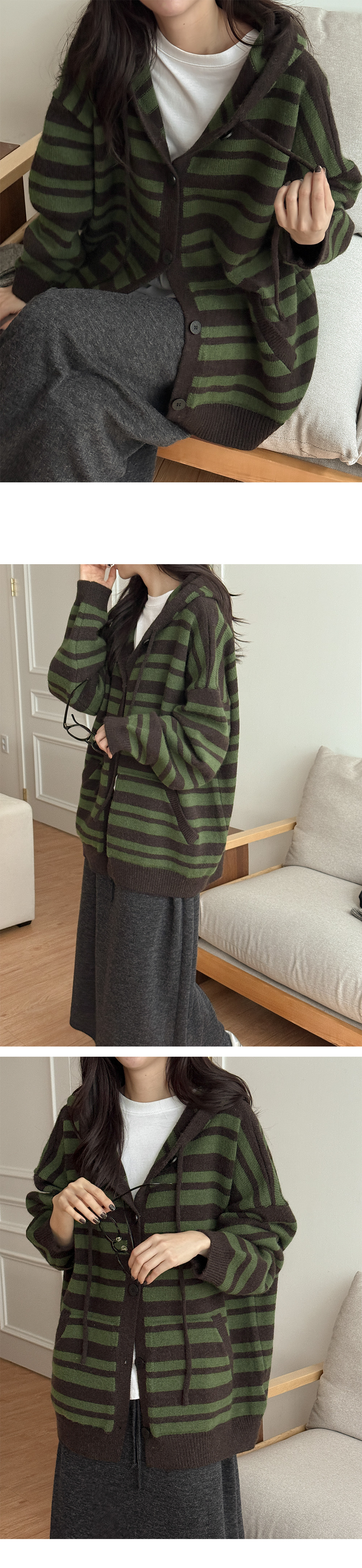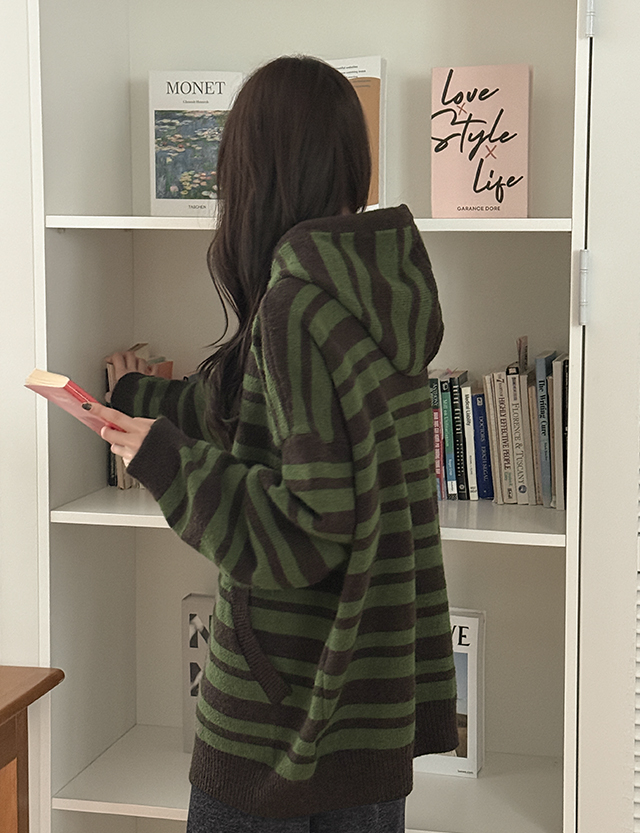 [남여공용]플로우 羊毛 條紋 衛衣 開襟外套 85904