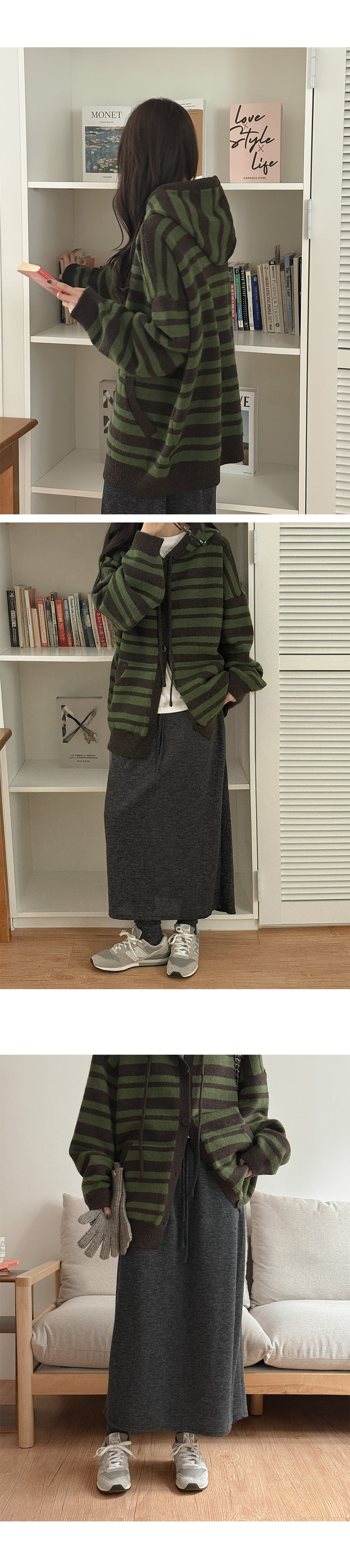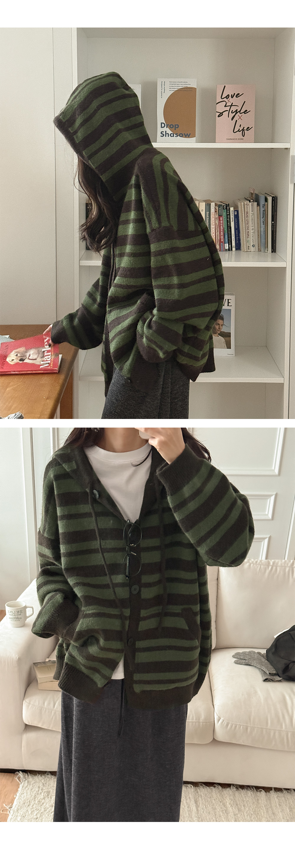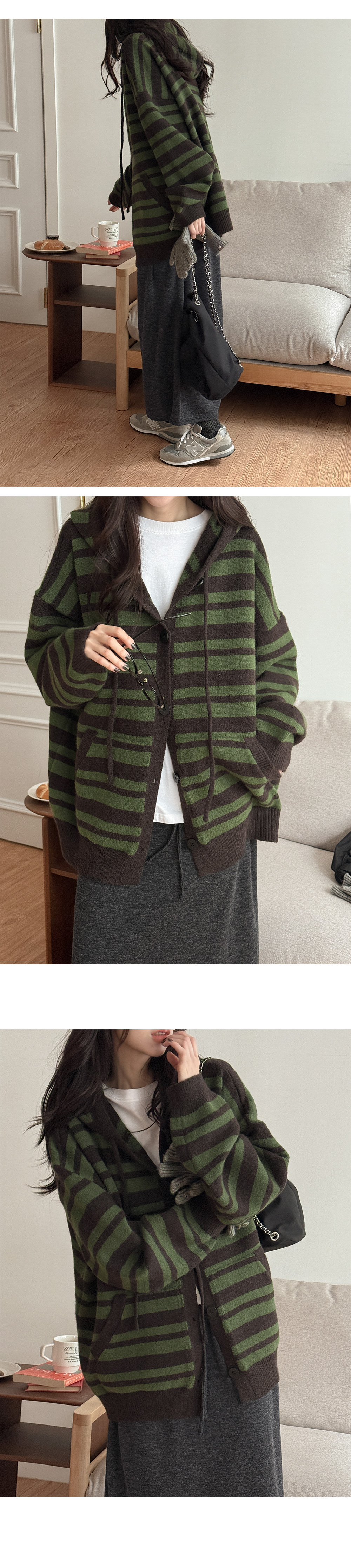 [남여공용]플로우 羊毛 條紋 衛衣 開襟外套 85904