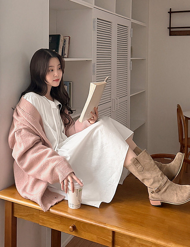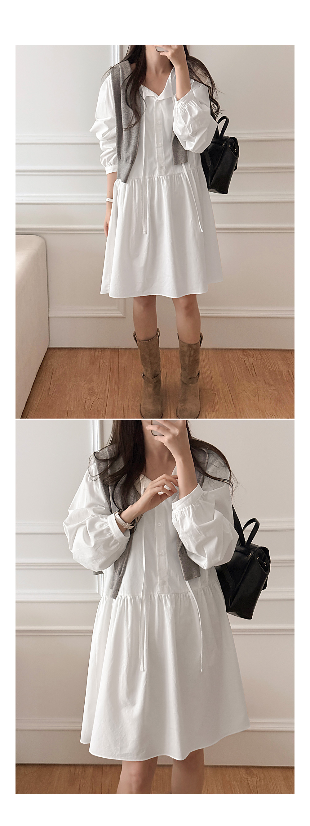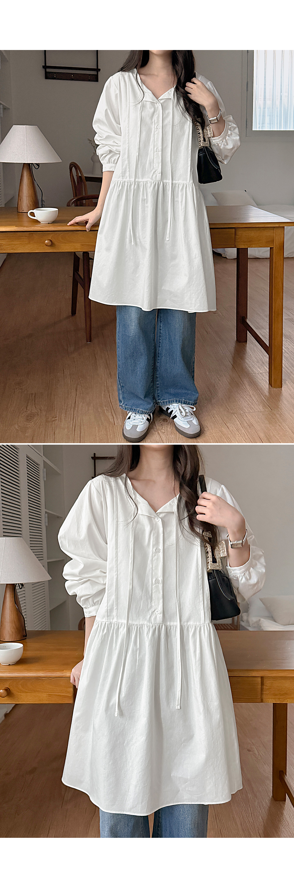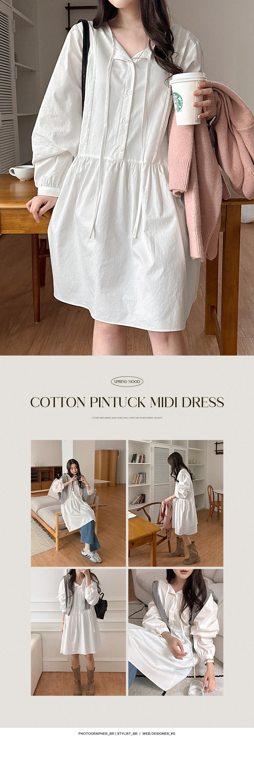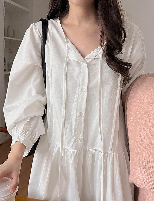 퓨어브 棉質 打摺 미디 洋裝 85974