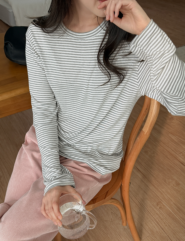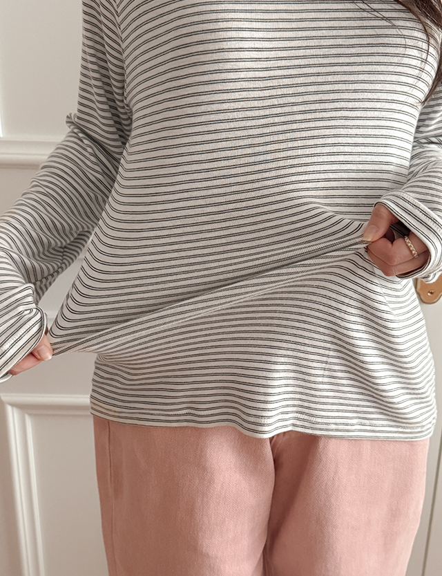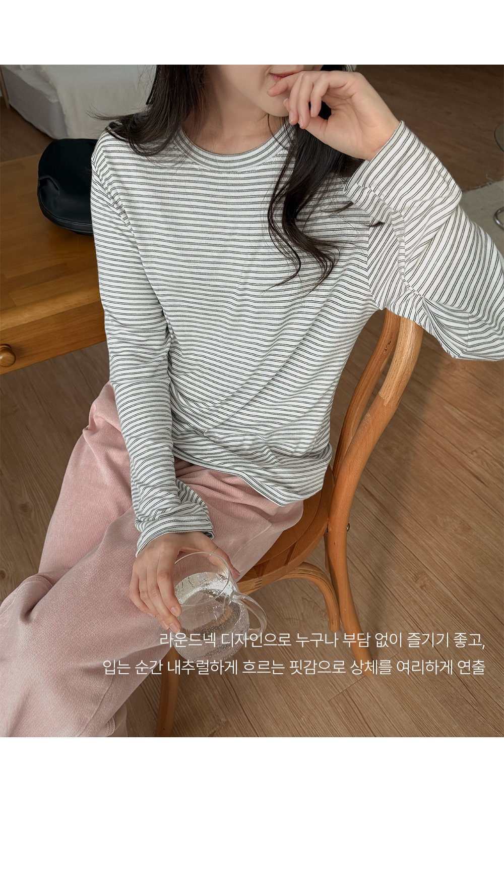 말랑 쫀쫀한 신축성이 느껴지는 스트라이프 티셔츠