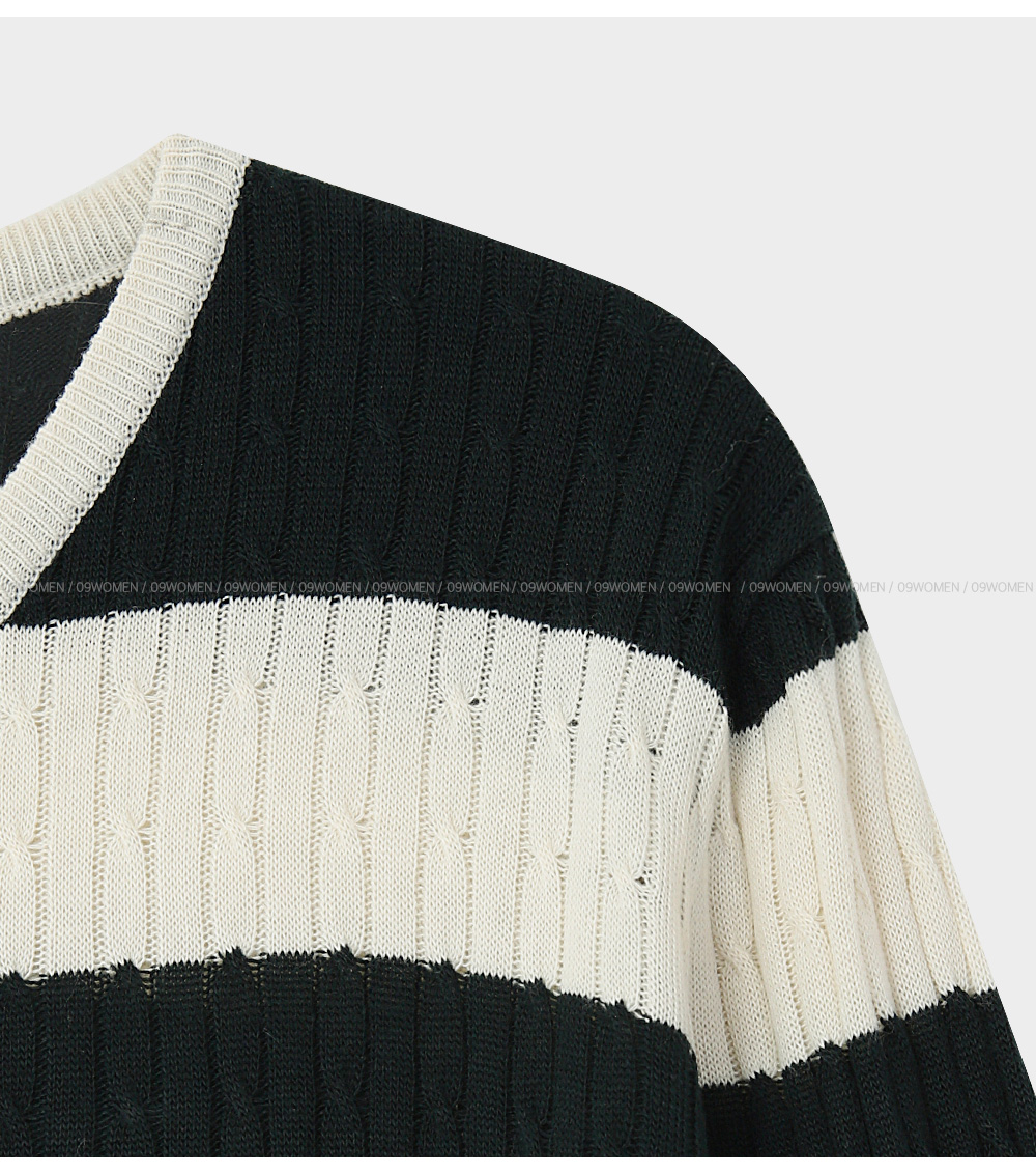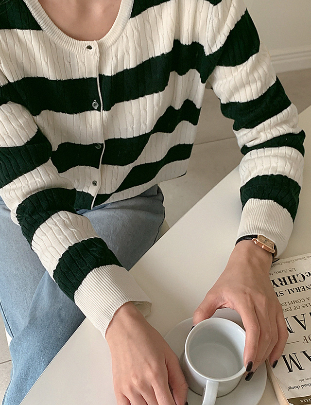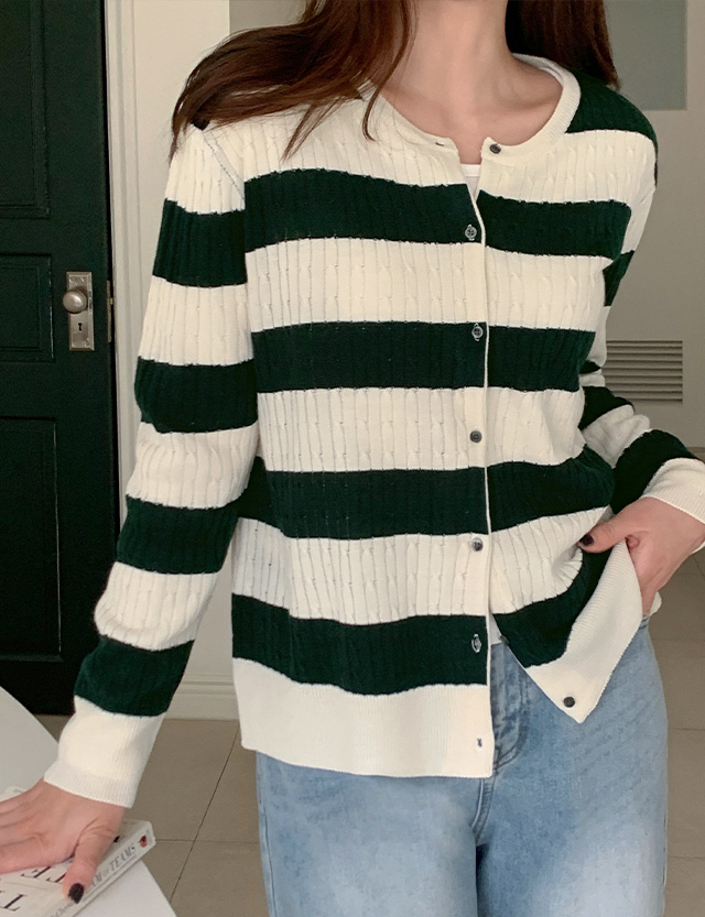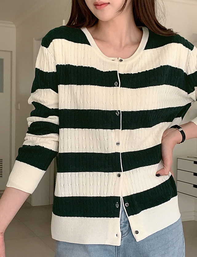 테로드 配色 단가라 케이블 圓領 開襟外套 86085