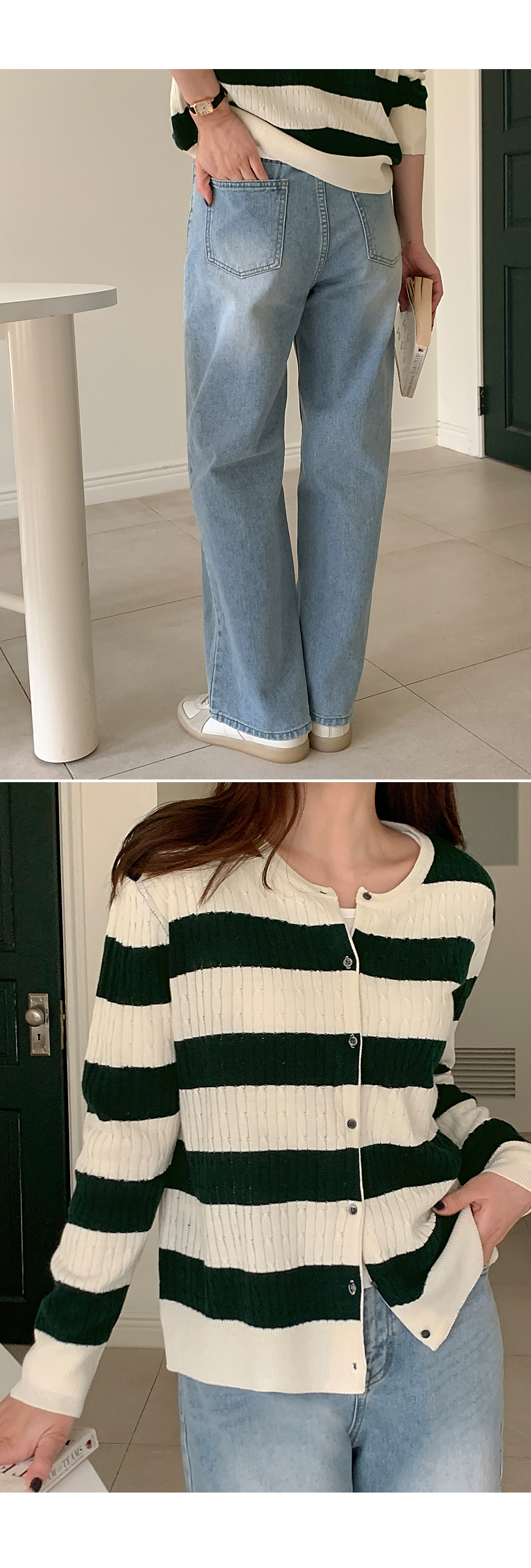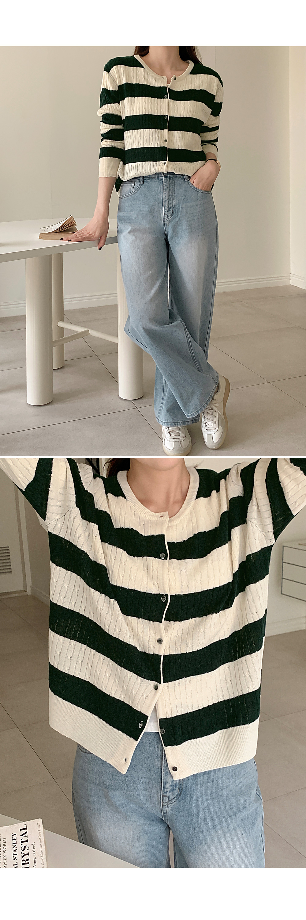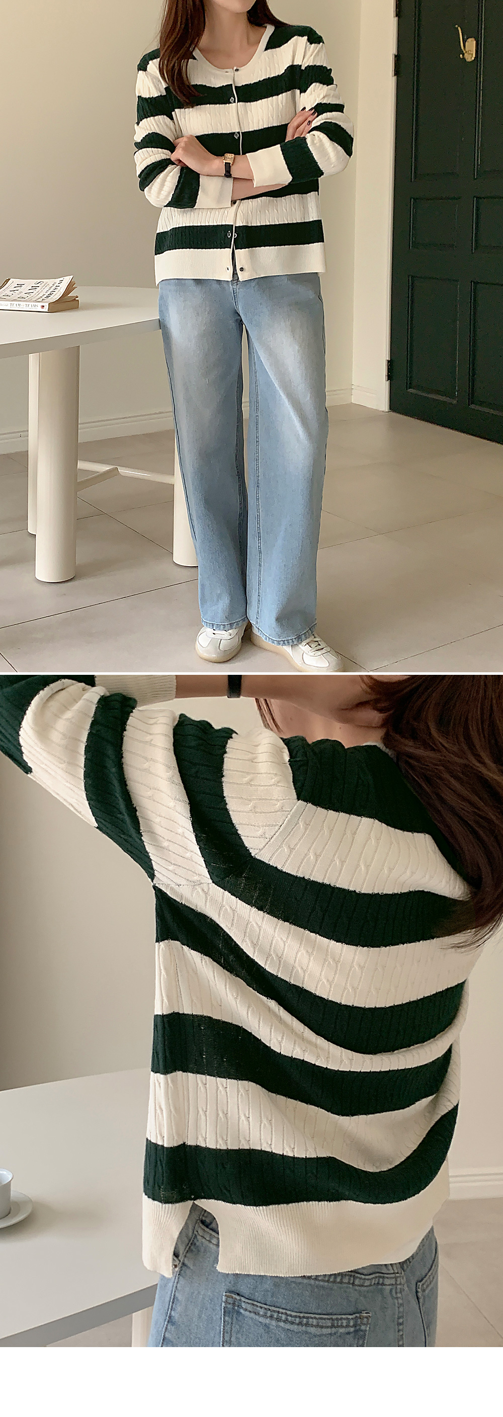 테로드 配色 단가라 케이블 圓領 開襟外套 86085