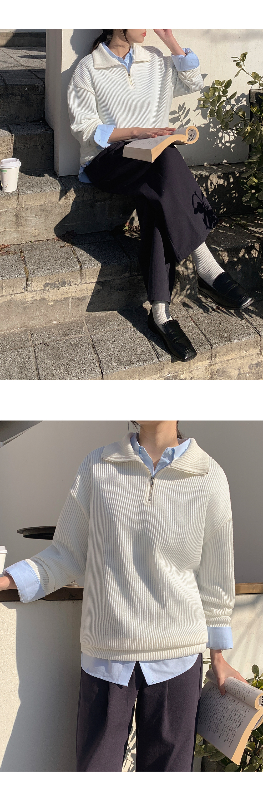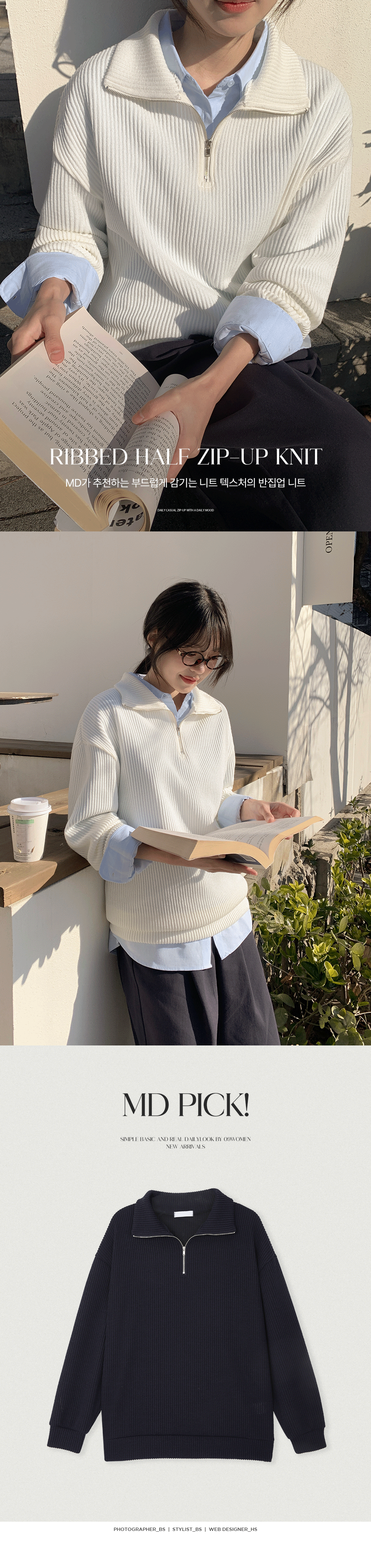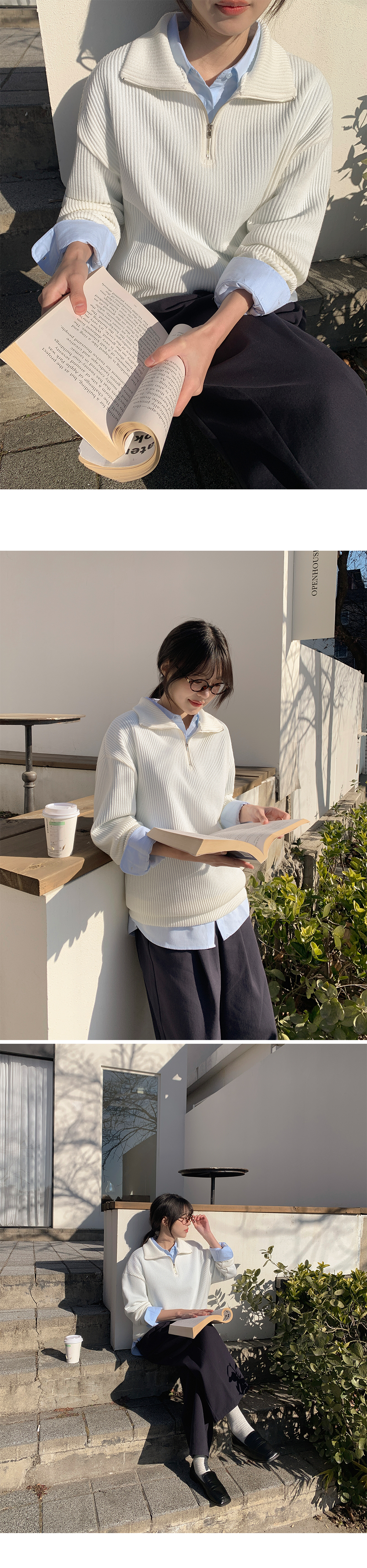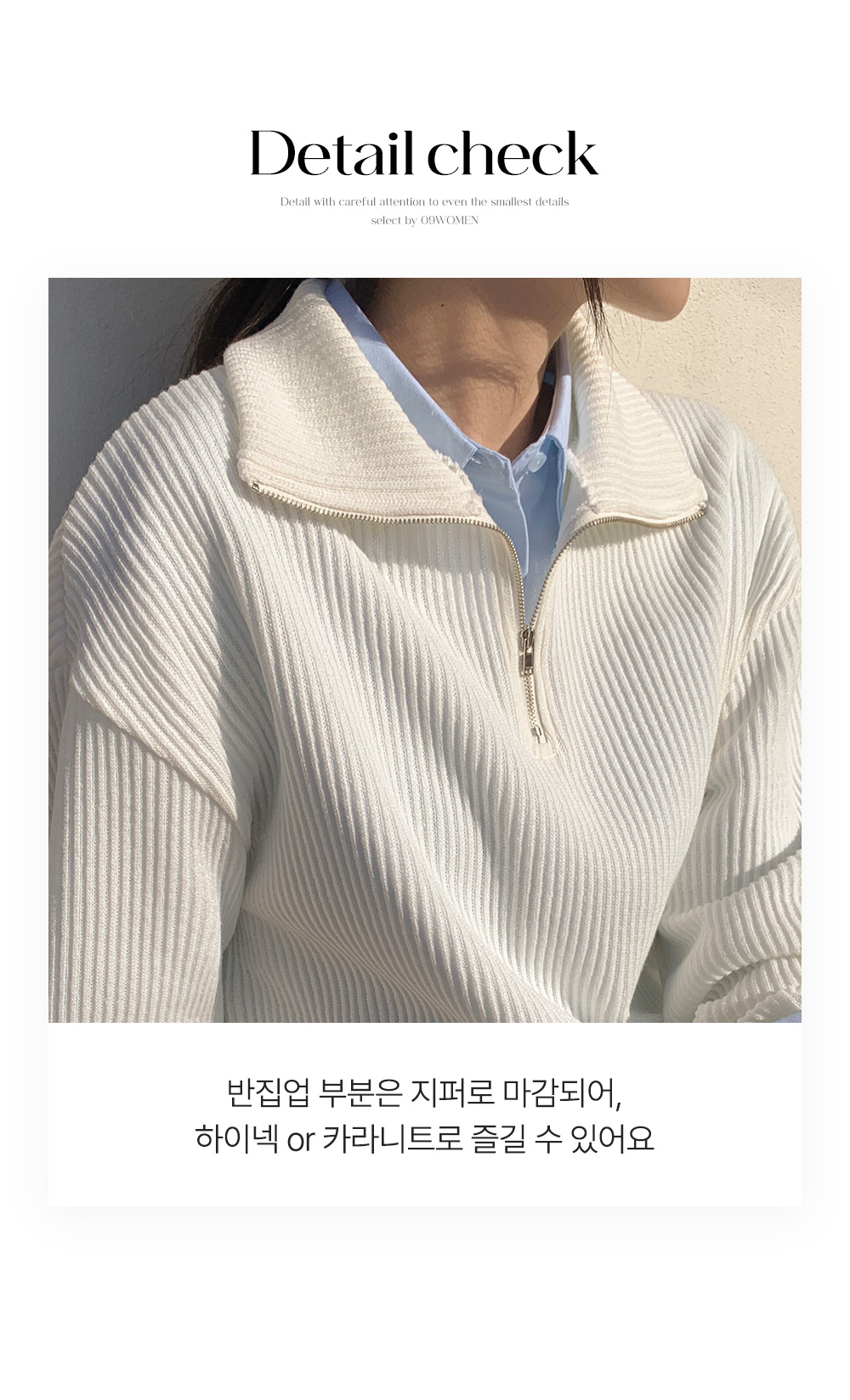 분위기에 따라 연출 가능한 반집업 니트