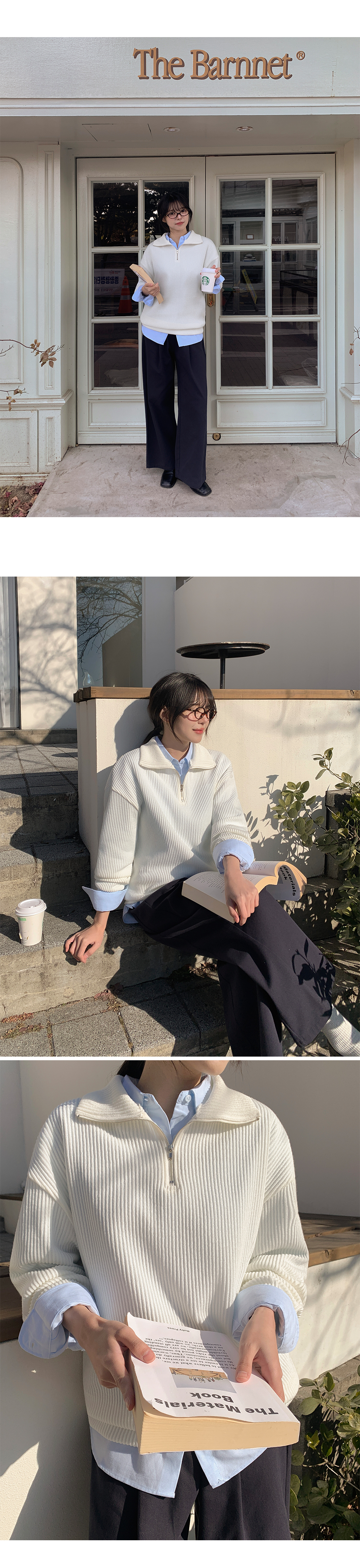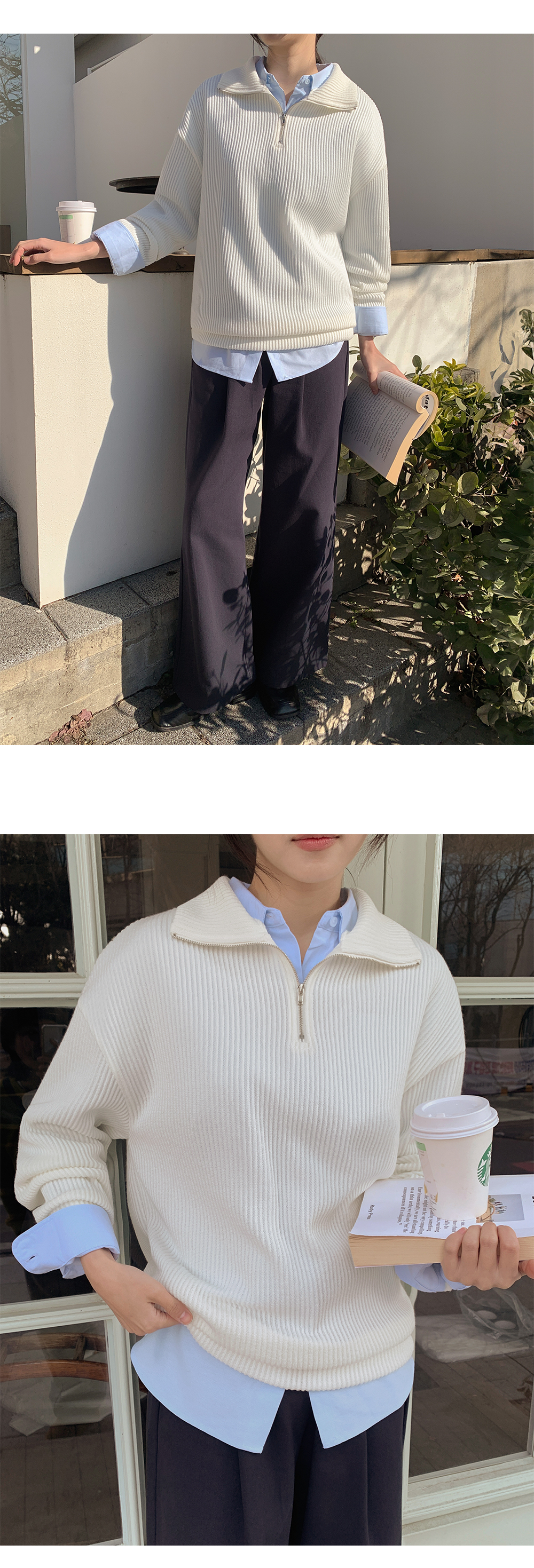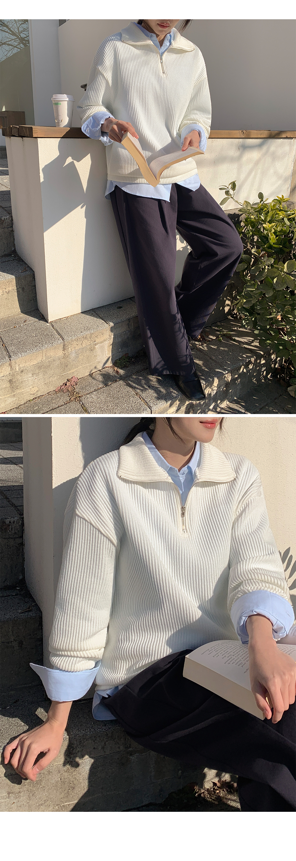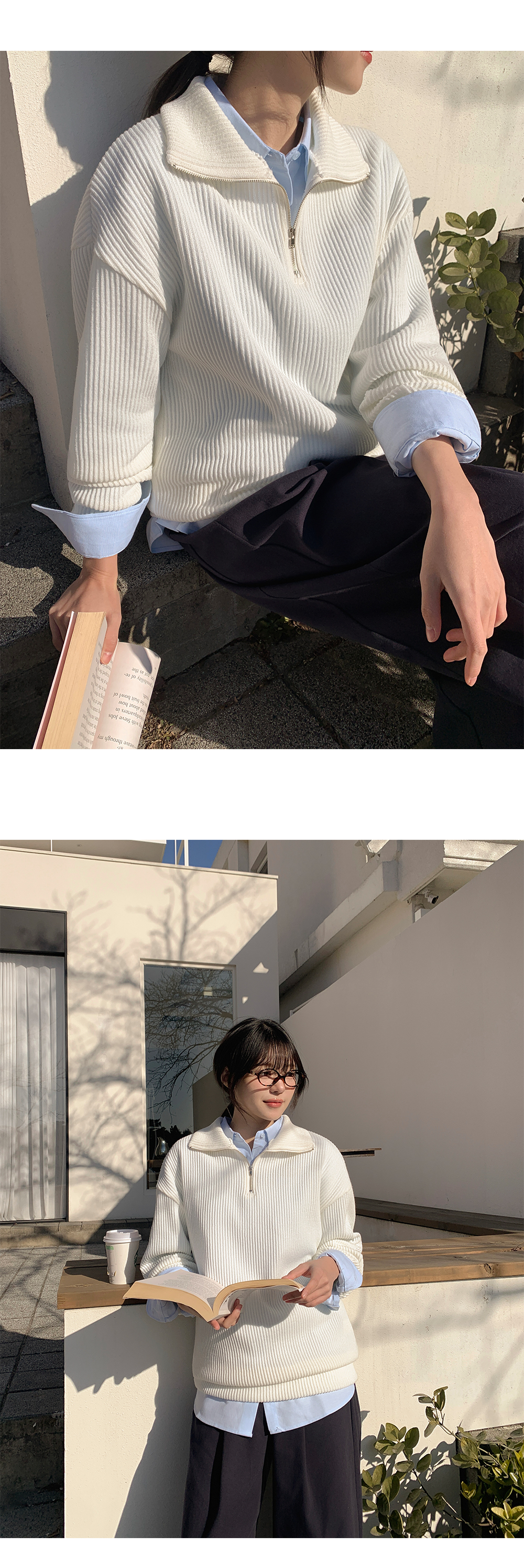 분위기에 따라 연출 가능한 반집업 니트