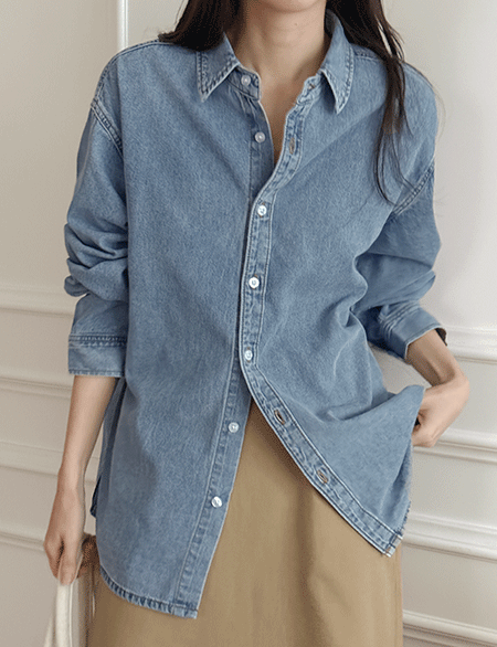 • [엠디픽] 클래틴 寬鬆 牛仔 襯衫 86042