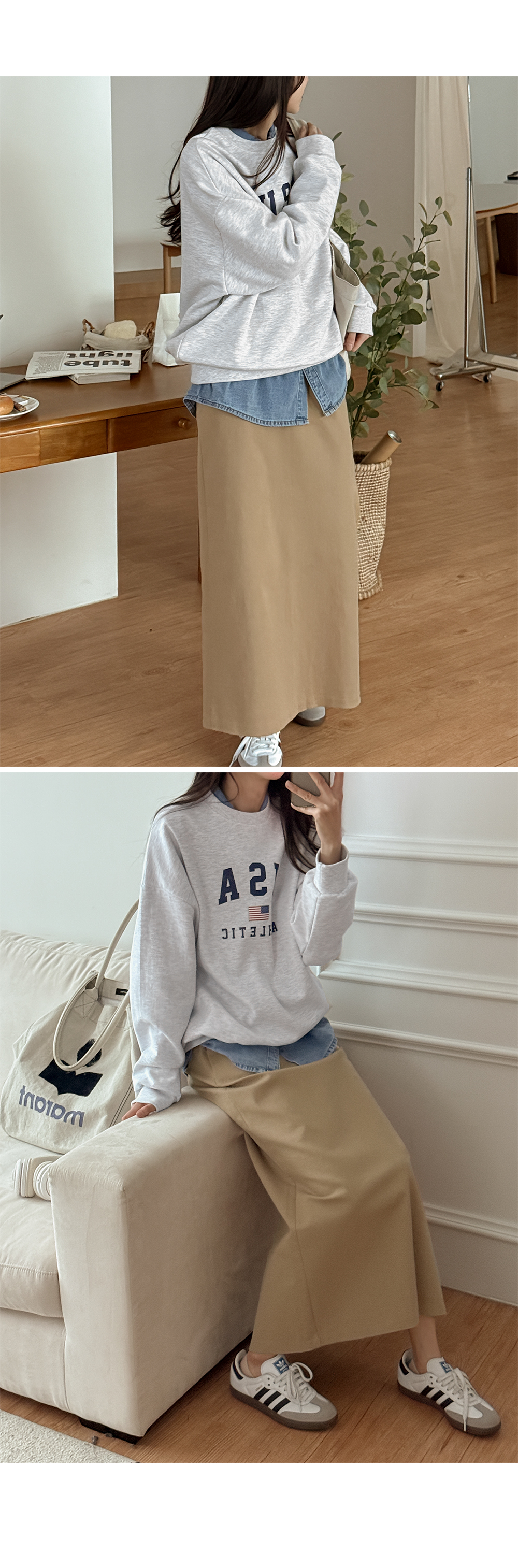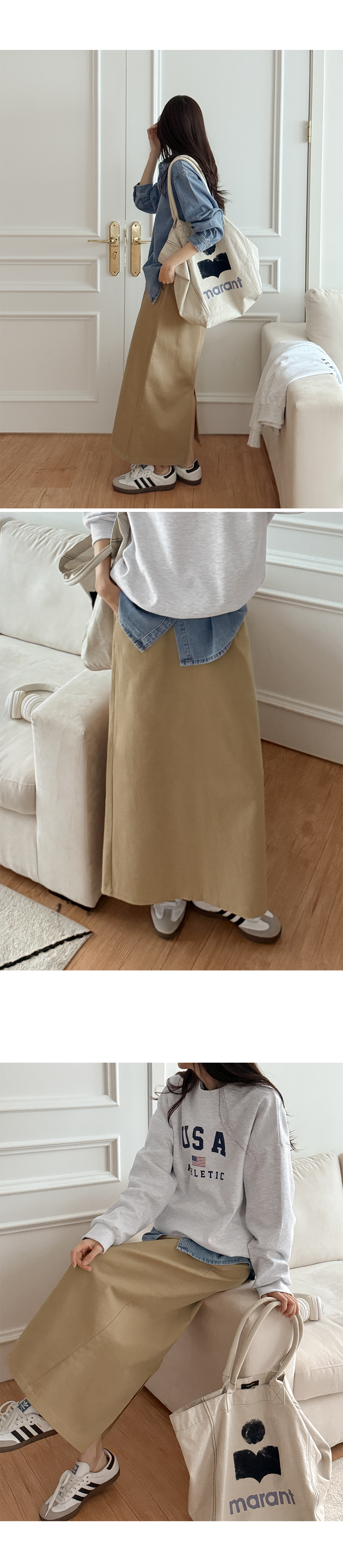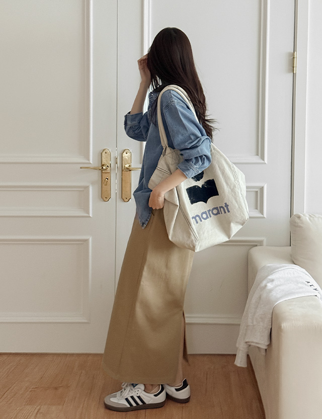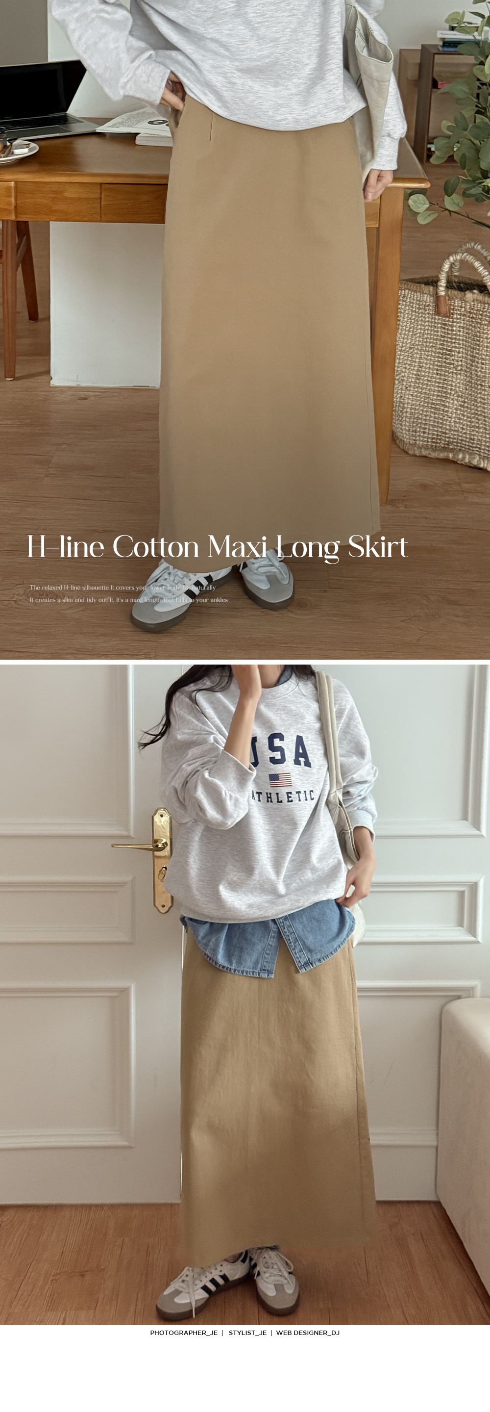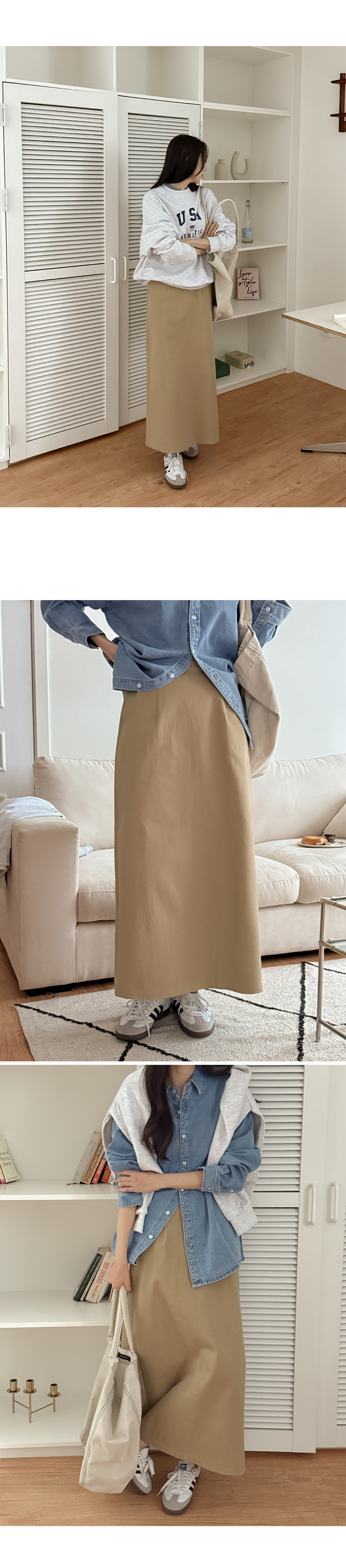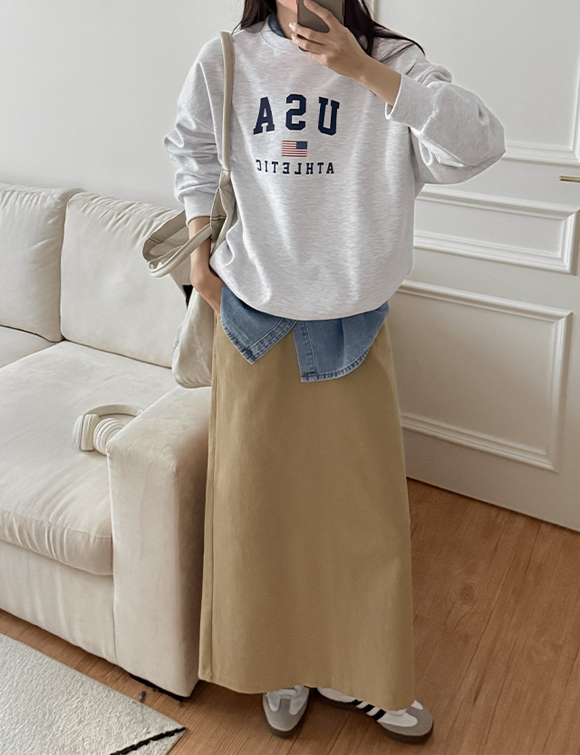 착용감은 편안한 코튼 맥시 롱스커트예요.