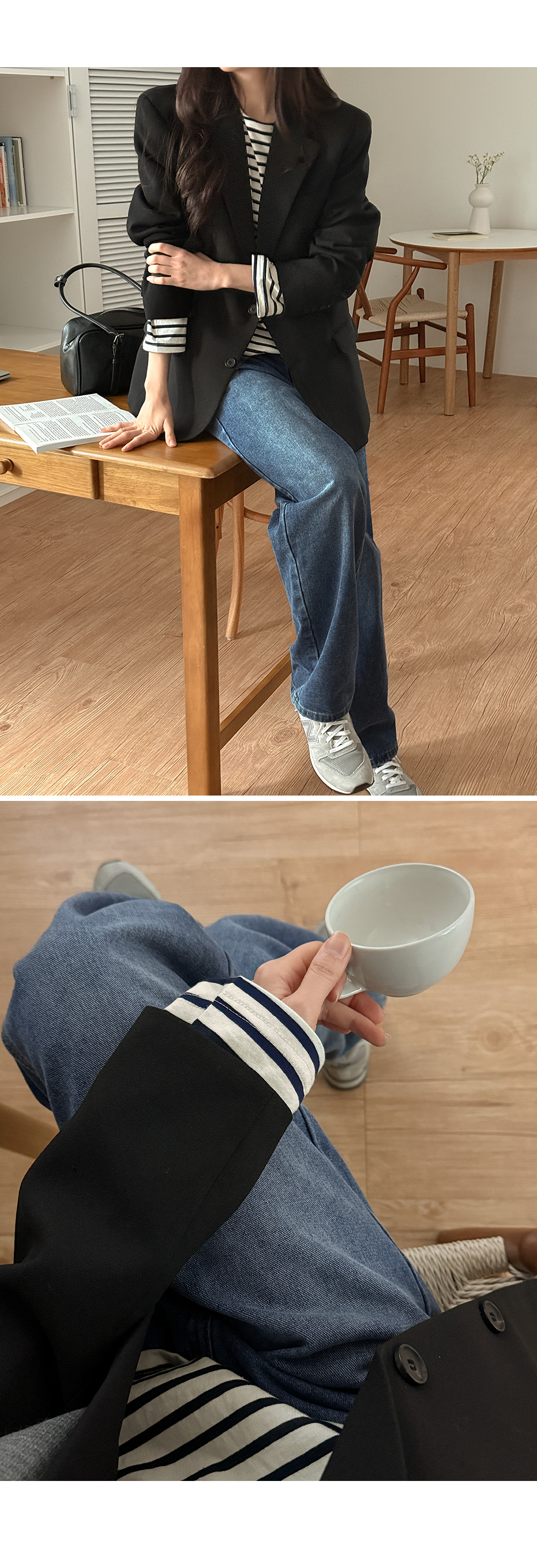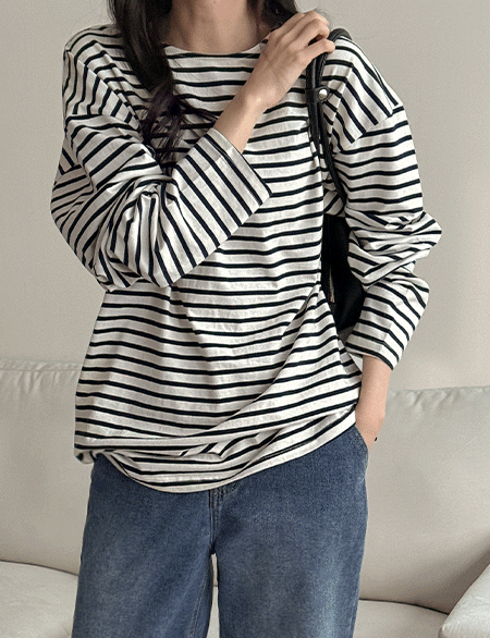 • 드림 條紋 보트넥 長袖 T恤 86003