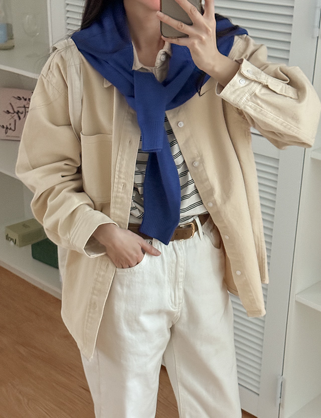 [남여공용] 데이케 寬鬆 棉質 襯衫 外套 86045