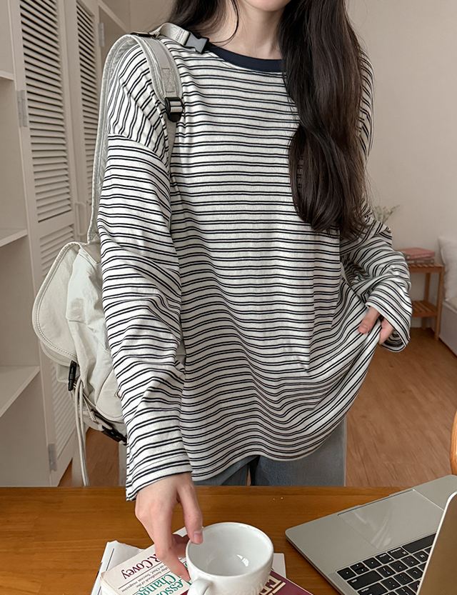 Stripe Round Long Sleeve T-Shirt