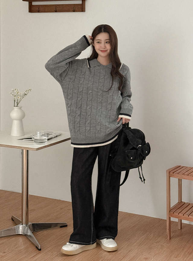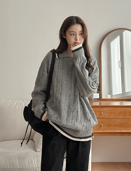 • 멋시 麻花型 配色 領口 針織 86094
