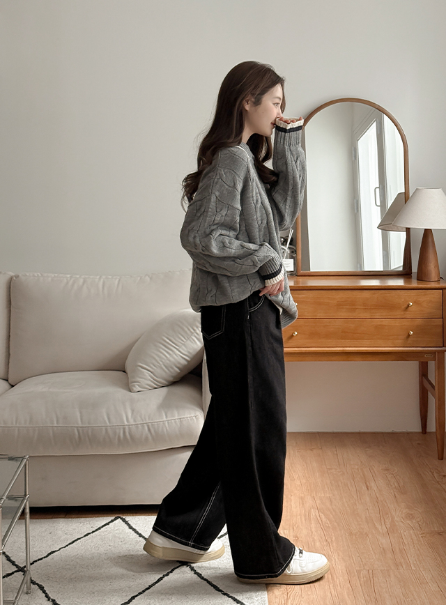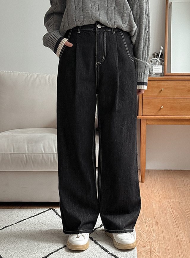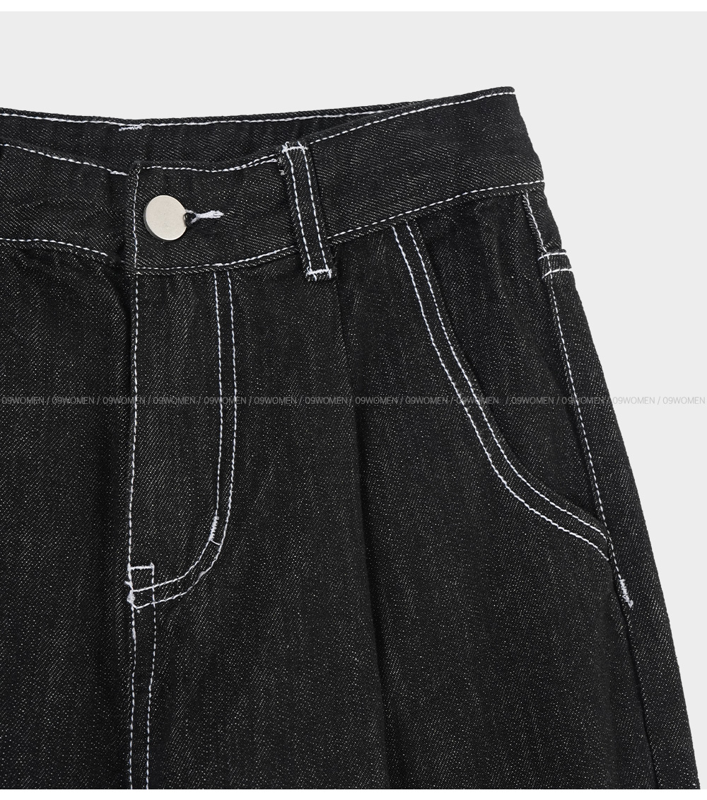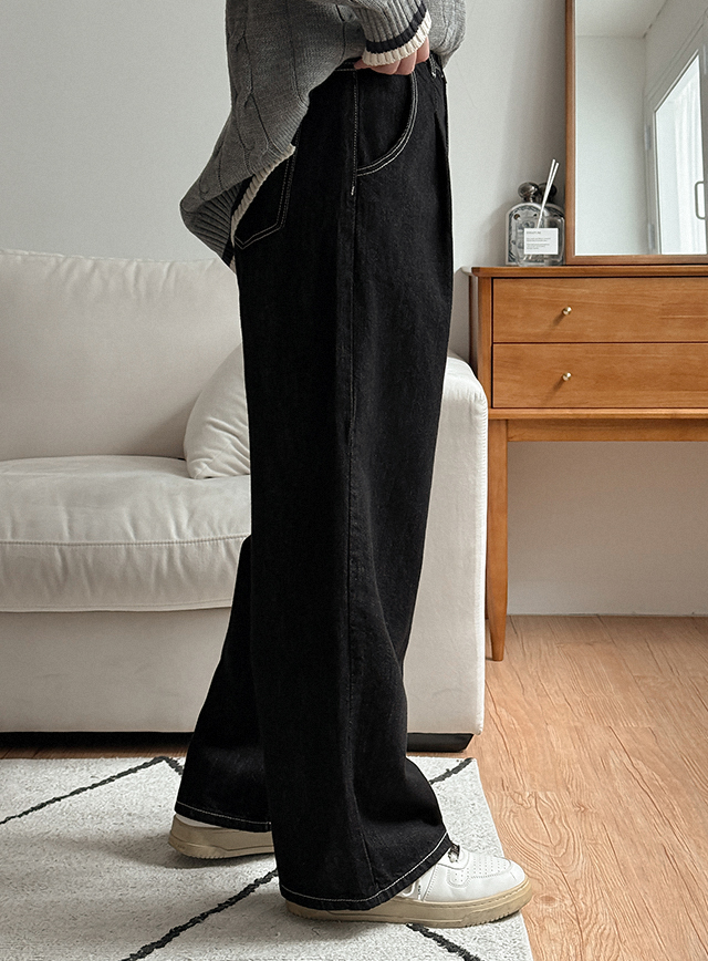 Non-faded Stitch Wide Denim Pants