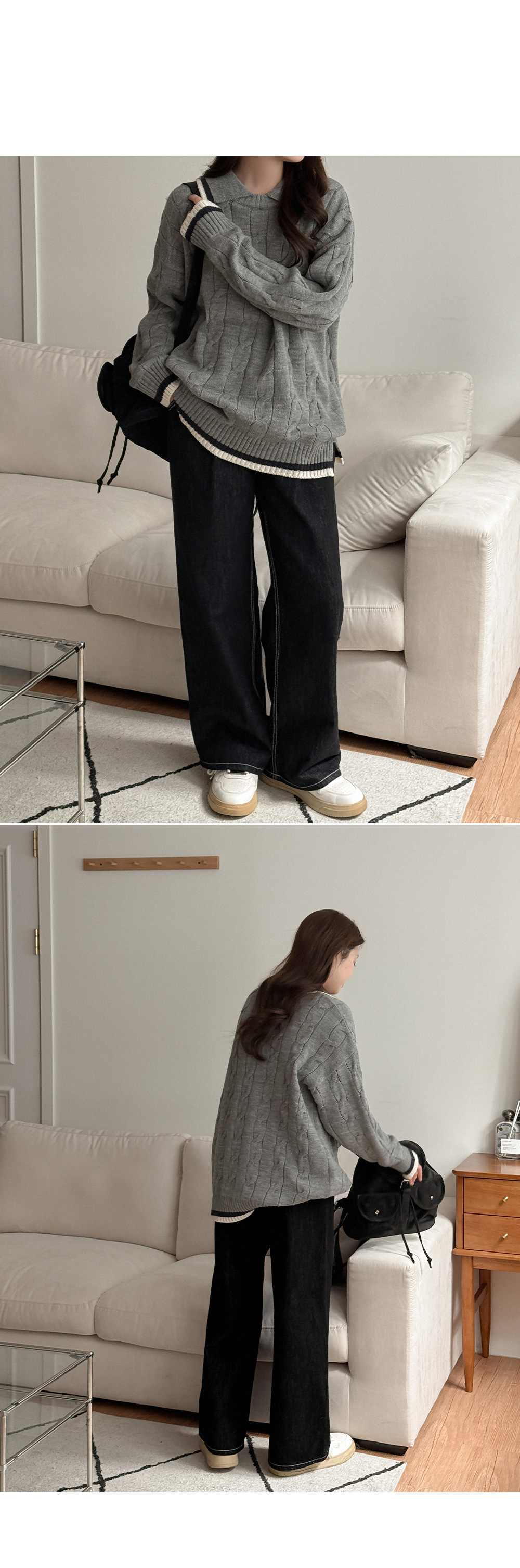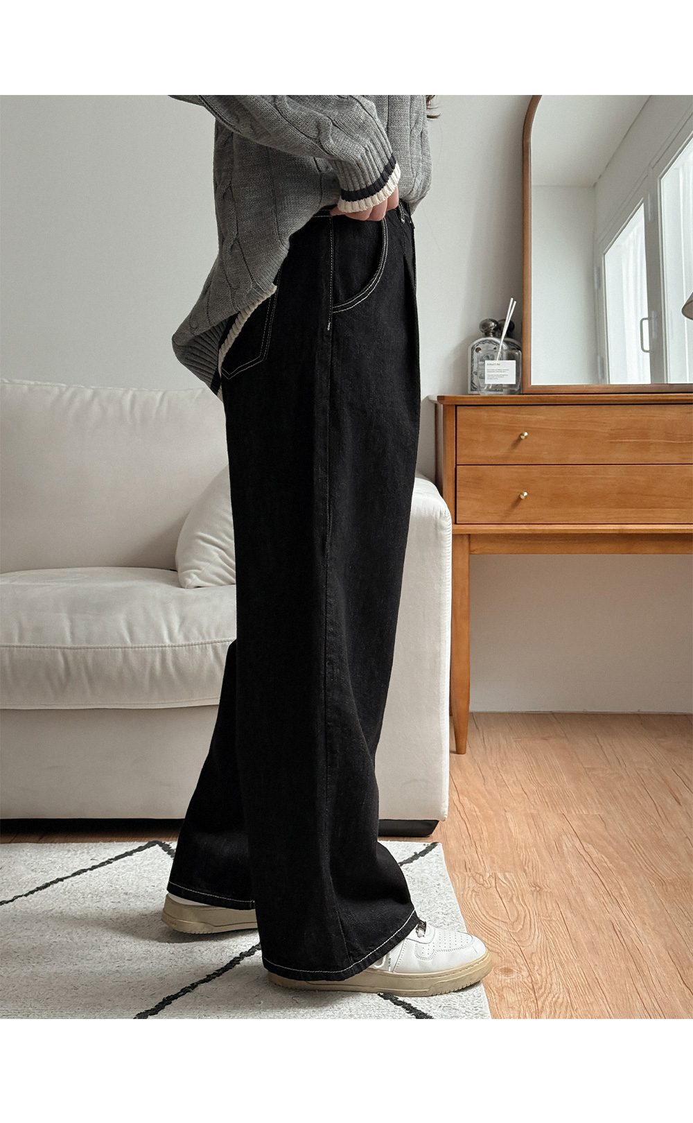 - 여유있는 와이드핏이 하체 라인을 자연스럽게 커버