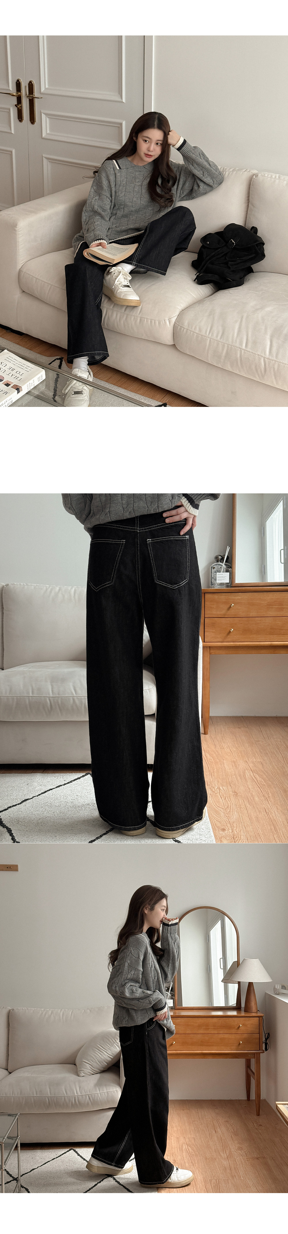 멘시 속밴딩 논페이드 縫線 寬 牛仔褲 86093