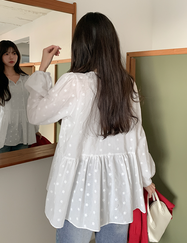 플로리스 波浪群/喇叭裙 泡泡袖 襯衫 86014