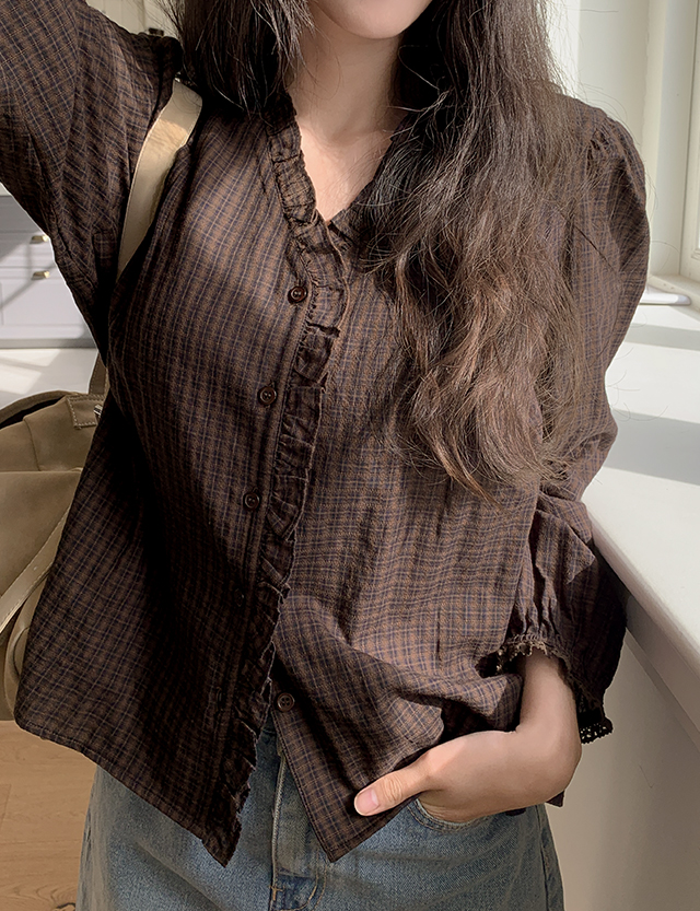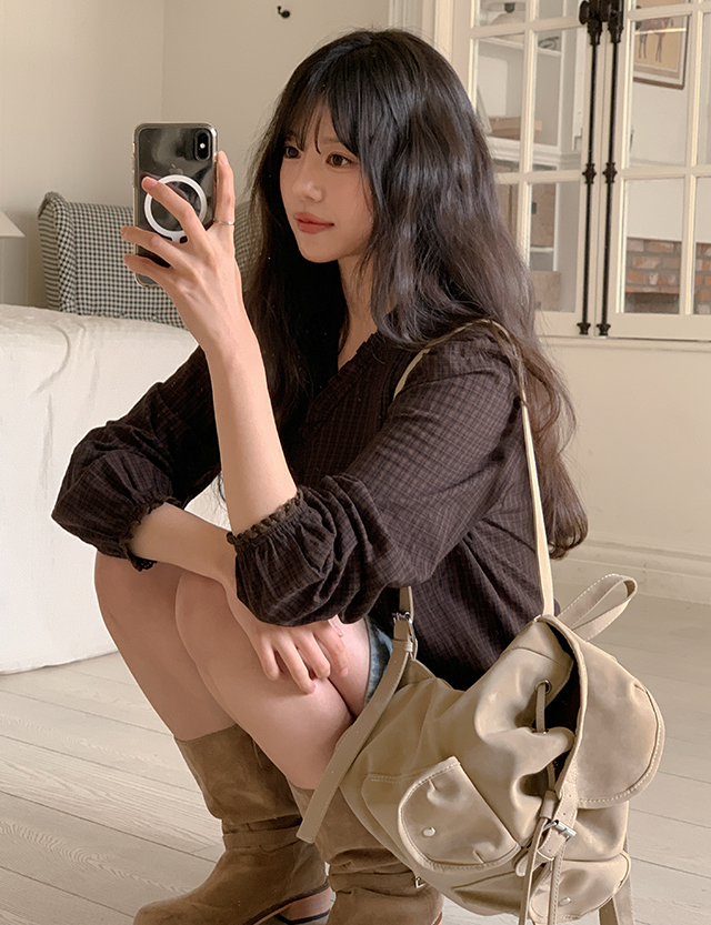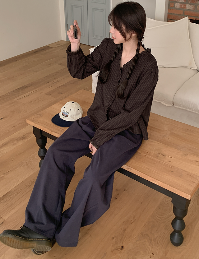베올 寬鬆 格紋 褶皺 襯衫 86174