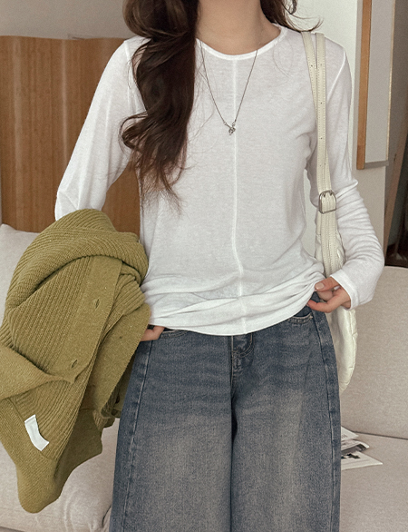 • 심플한 關鍵點 日常款 절개 長袖 T恤 86168