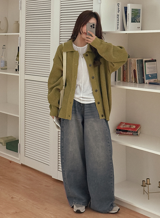 • 모우트 羅紋 領口 針織 開襟外套 86167