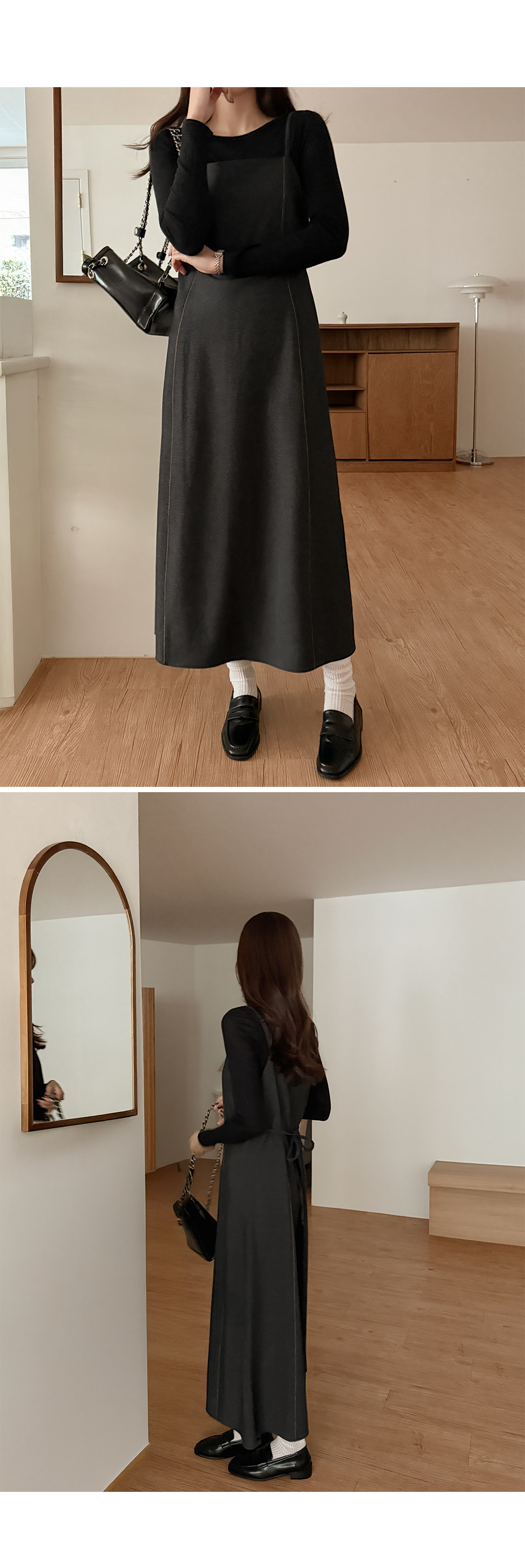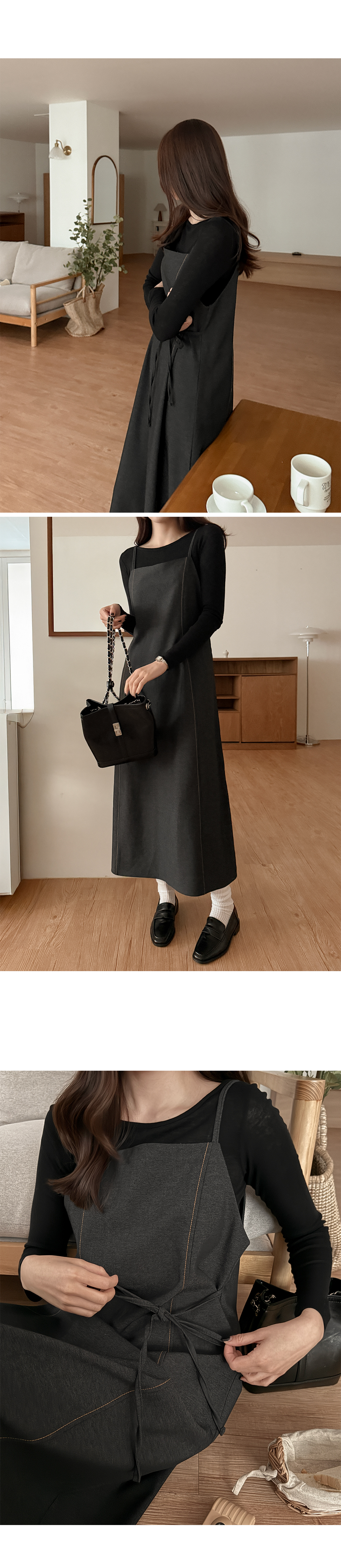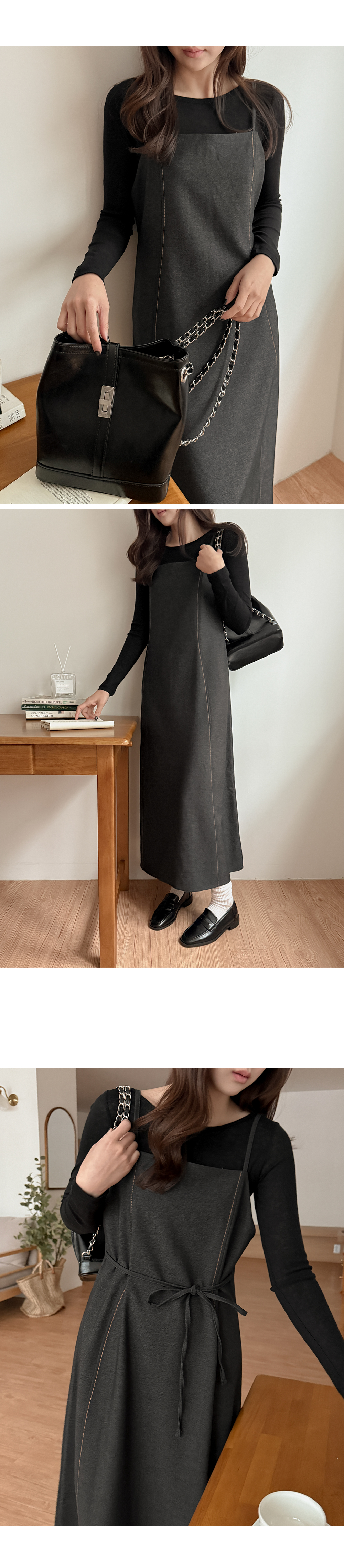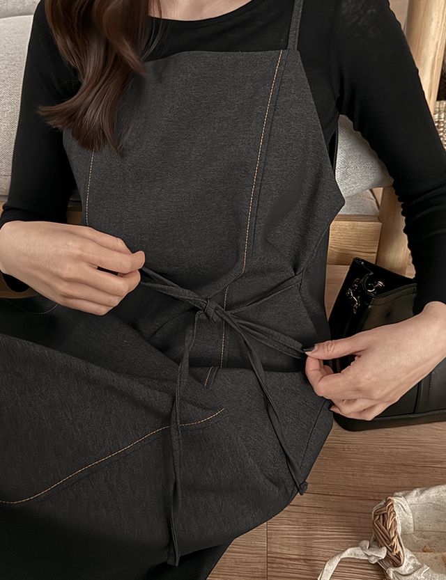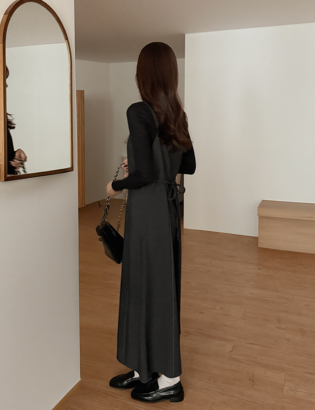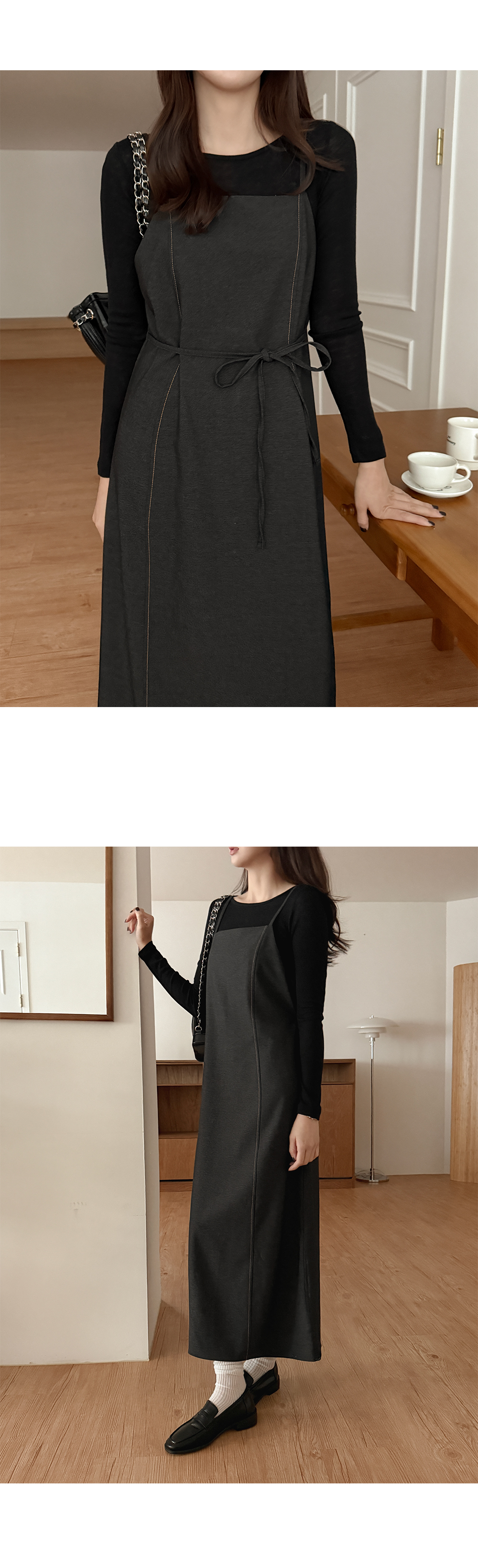 - 체형 커버에 좋은 벨트 롱 원피스
