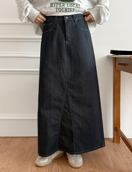 • 앗티 鬆緊腰 A線條 原色丹寧 牛仔 長裙 86170