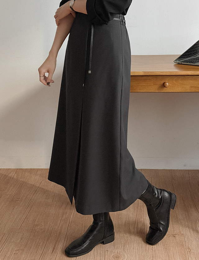 티시크 鬆緊腰 레더 腰帶 套裝 長裙 86270