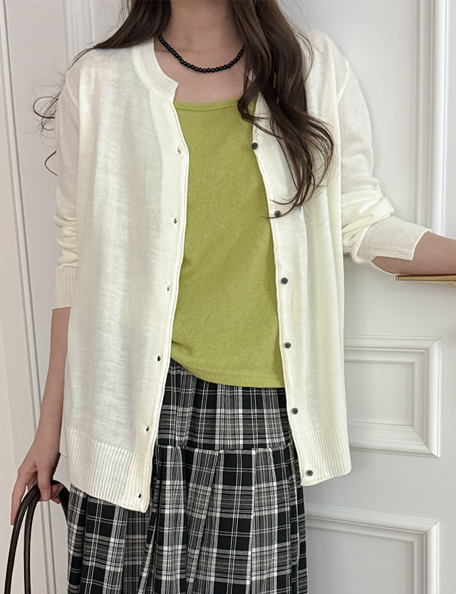 - 라운드에서 브이넥으로 자연스럽게 떨어지는 오픈 브이넥 니트 가디건