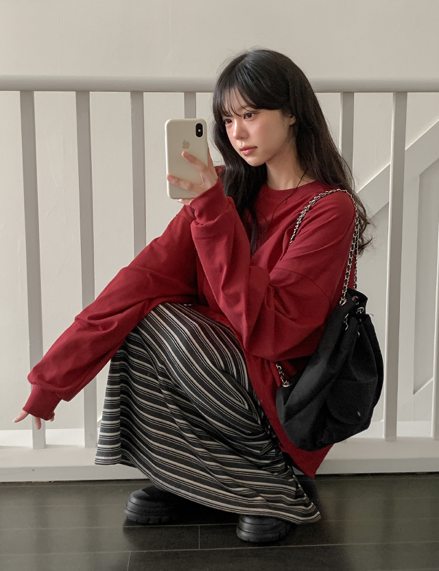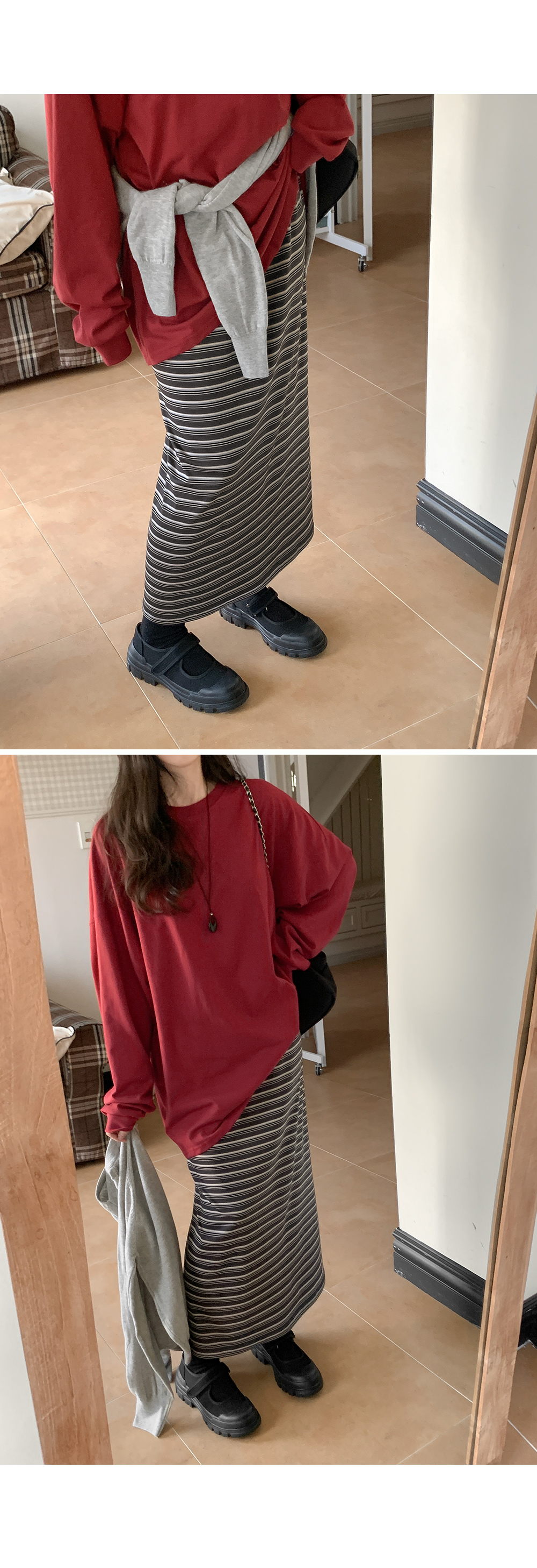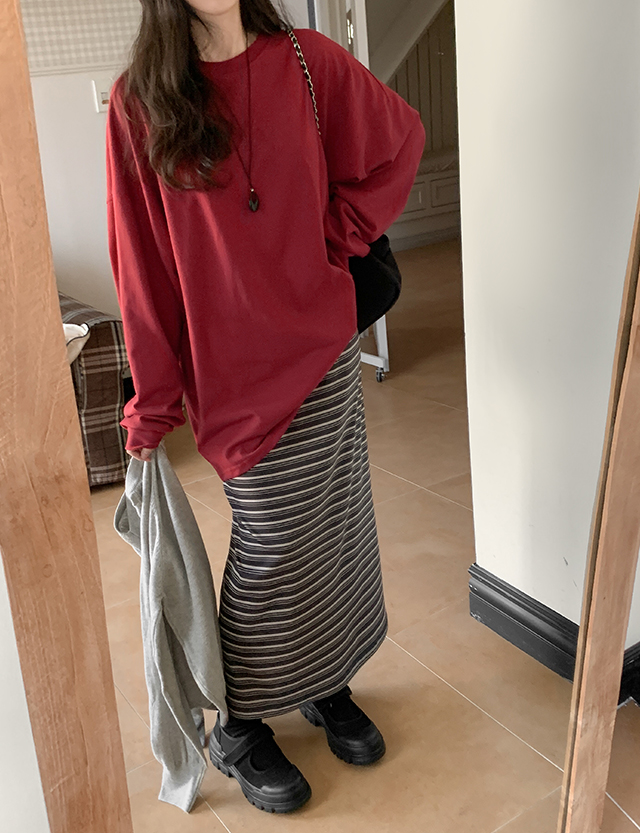 • 리네아 多色 條紋 鬆緊腰 長裙 86634