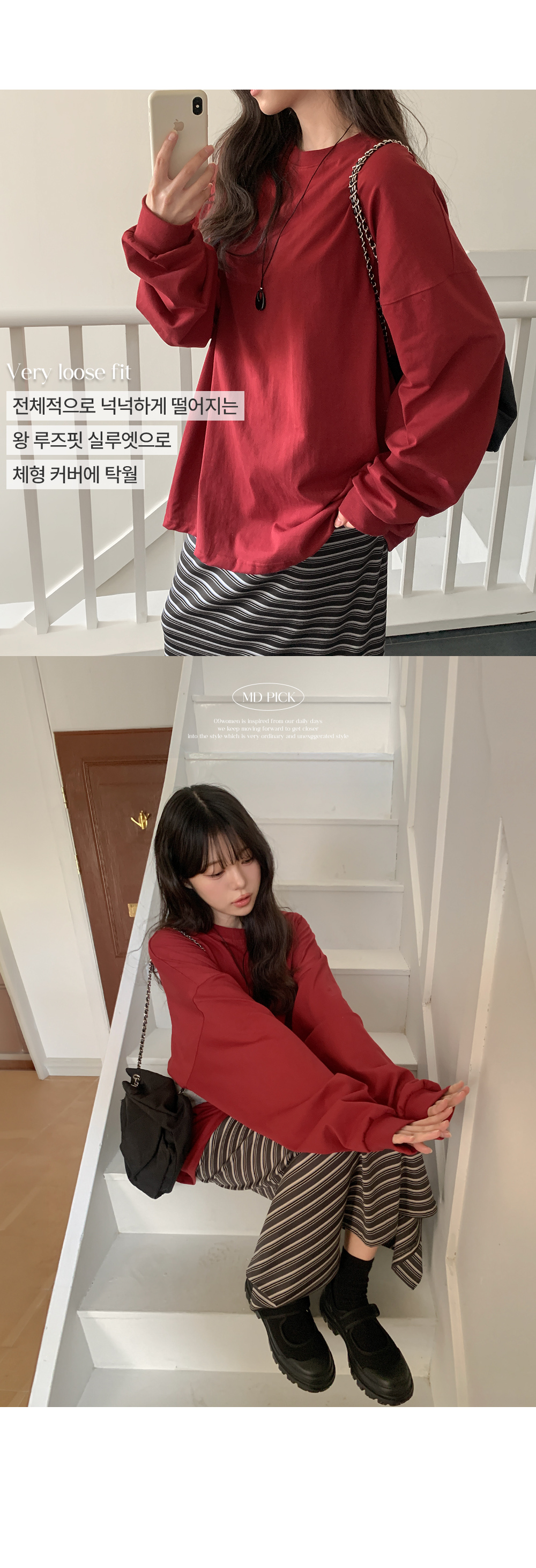 [엠디픽][컬러기획] 많이 먹을때 입는 왕 寬鬆款 무지 運動衫 T恤 86643