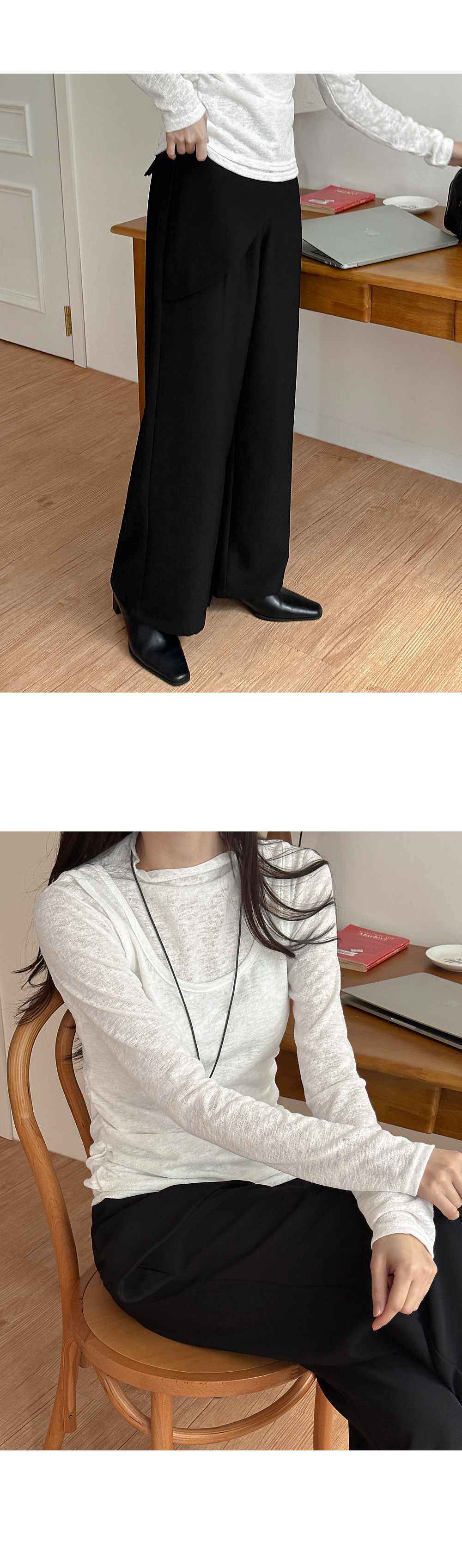 [09초이스] 슬림해보이는 兩片式 關鍵點 寬 休閒長褲 86534