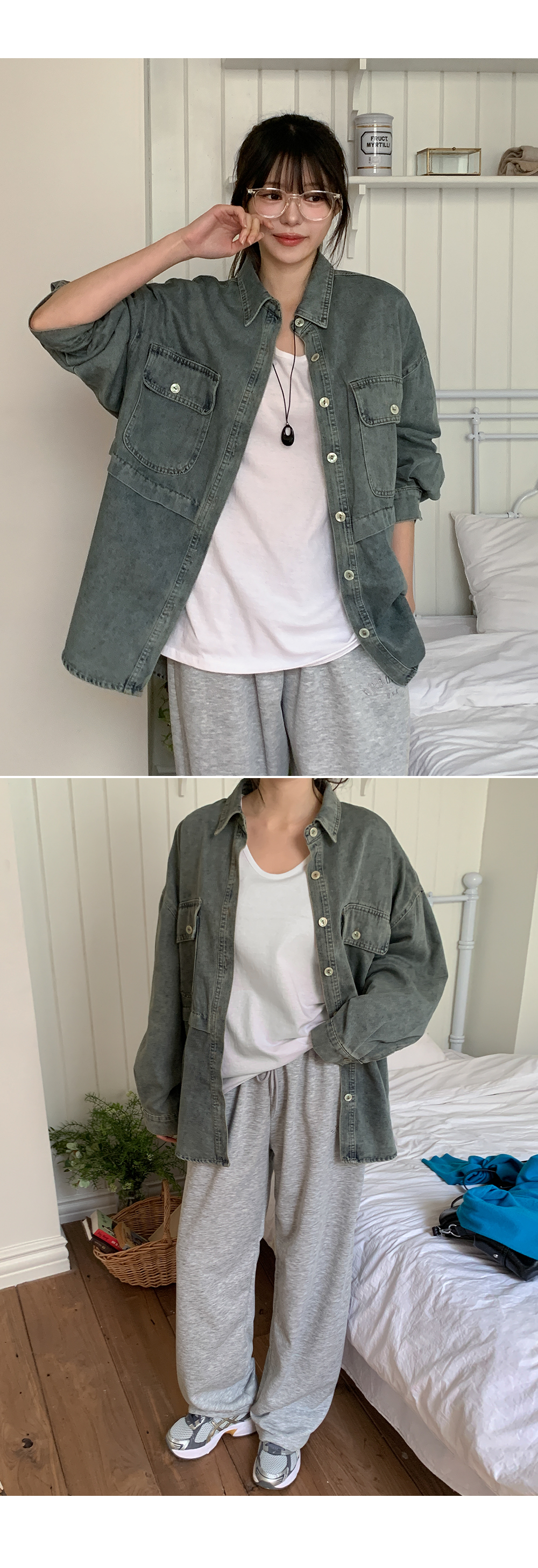 [09초이스] 멋스럽게 툭 걸쳐입는하프 牛仔 襯衫 外套 86501