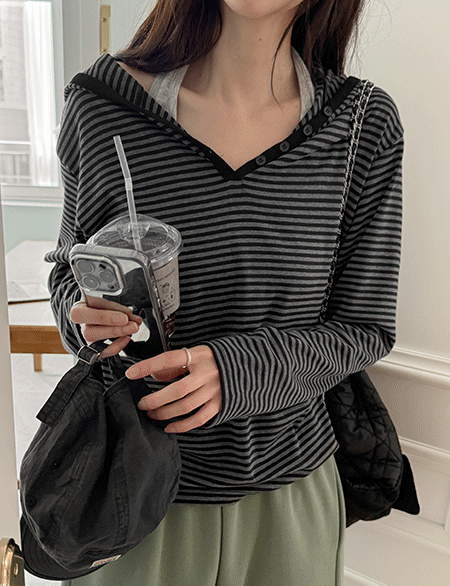 • 모리 條紋 반오픈 衛衣 T恤 86794