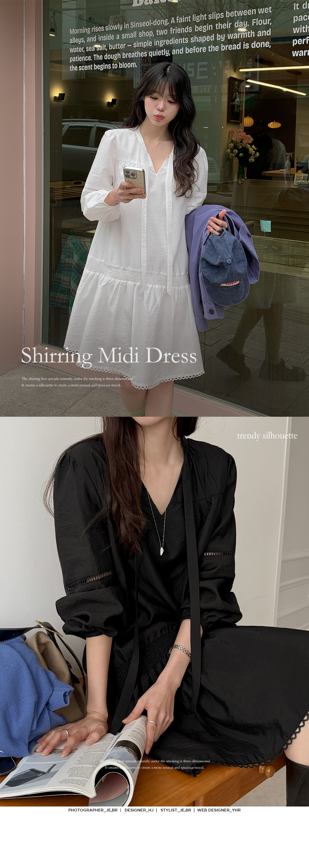 - 전체적으로 셔링이 잡혀 사랑스러운 샤랄라 원피스