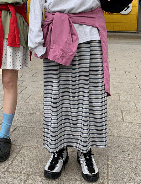 • 휘뚤마뚤 條紋 鬆緊腰 長裙 86927