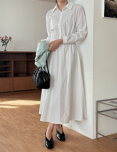 • 스프링 襯衫 鬆緊腰 波浪群/喇叭裙 長款 洋裝 86827